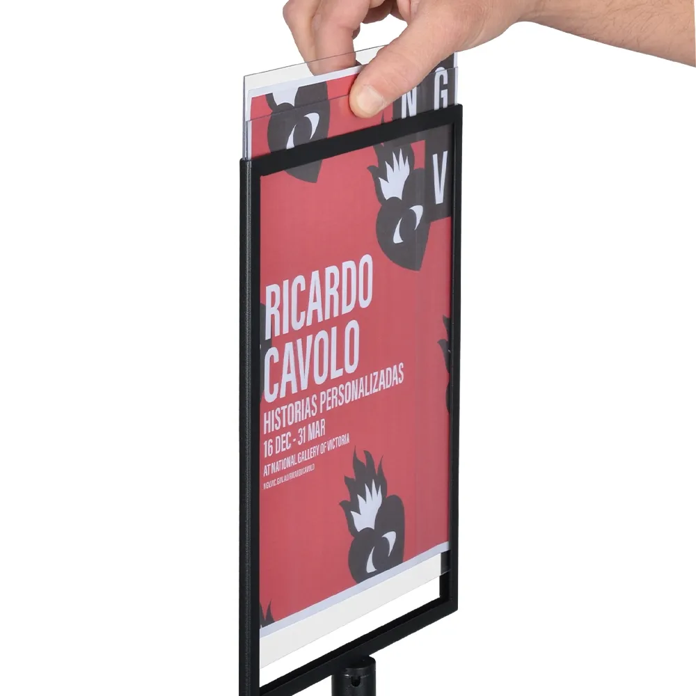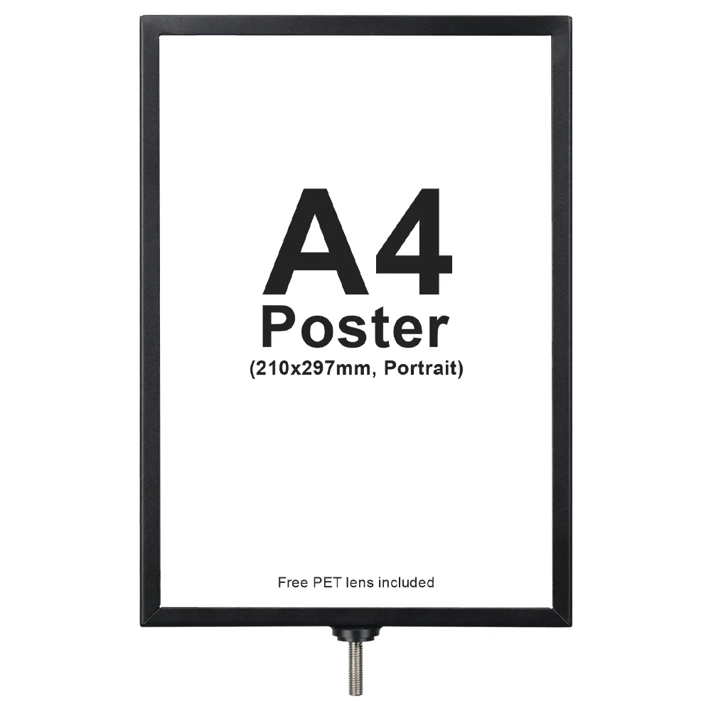 - Dual-sided sign frame is designed to hold A4 (210 x 297mm) posters in portrait format