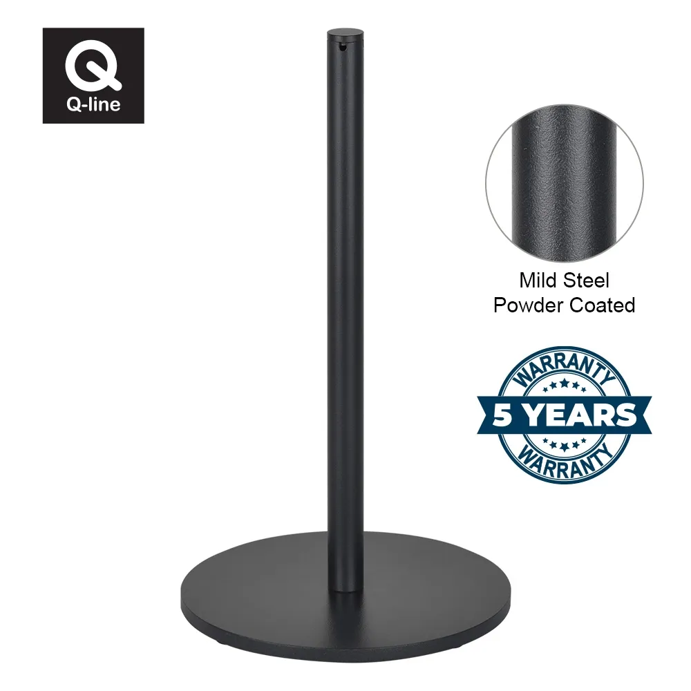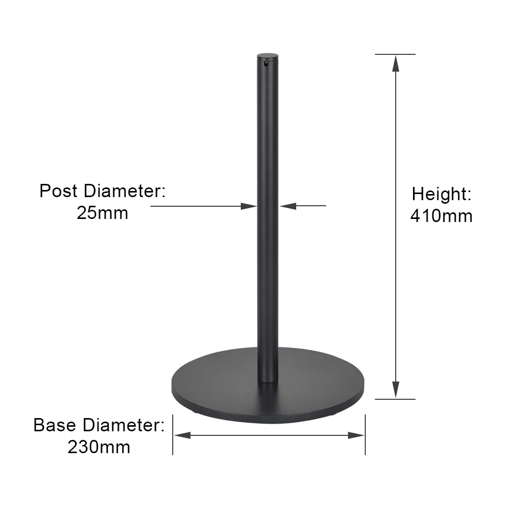 - Black stanchion assembles with only simple tools, & has weighted base for stability