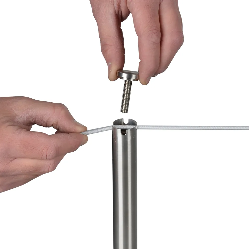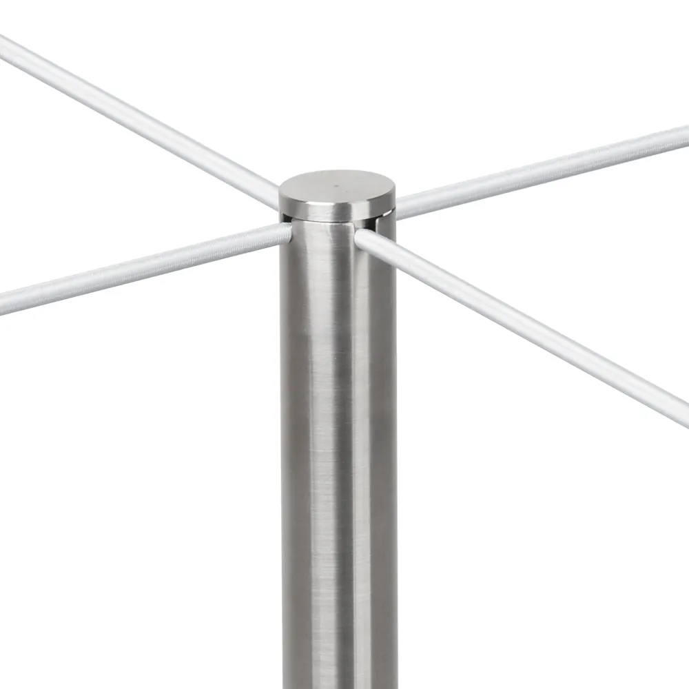 The museum stanchions, part of our line of crowd control and queue sets, has a screw-on top that holds the cord in place securely. The top of the post has (4) cut-outs to direct the rope into the direction that you need. Each post should be spaced about 1.5m to 1.8m whilst in use, helping to keep the elastic cord taut. These barrier posts are designed for use with elastic cord instead of retractable belts or VIP ropes like other crowd control posts, with the slim 5mm cord being visible enough to warn visitors but thin enough to provide almost full view.
