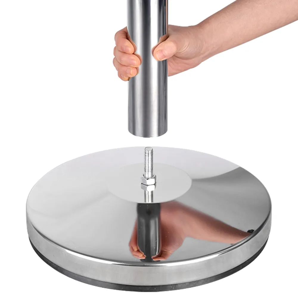 - Polished silver finish stainless steel post sets up without tools needed