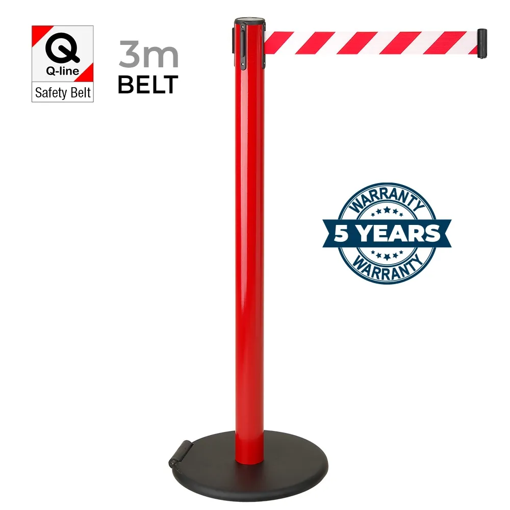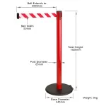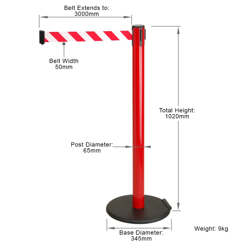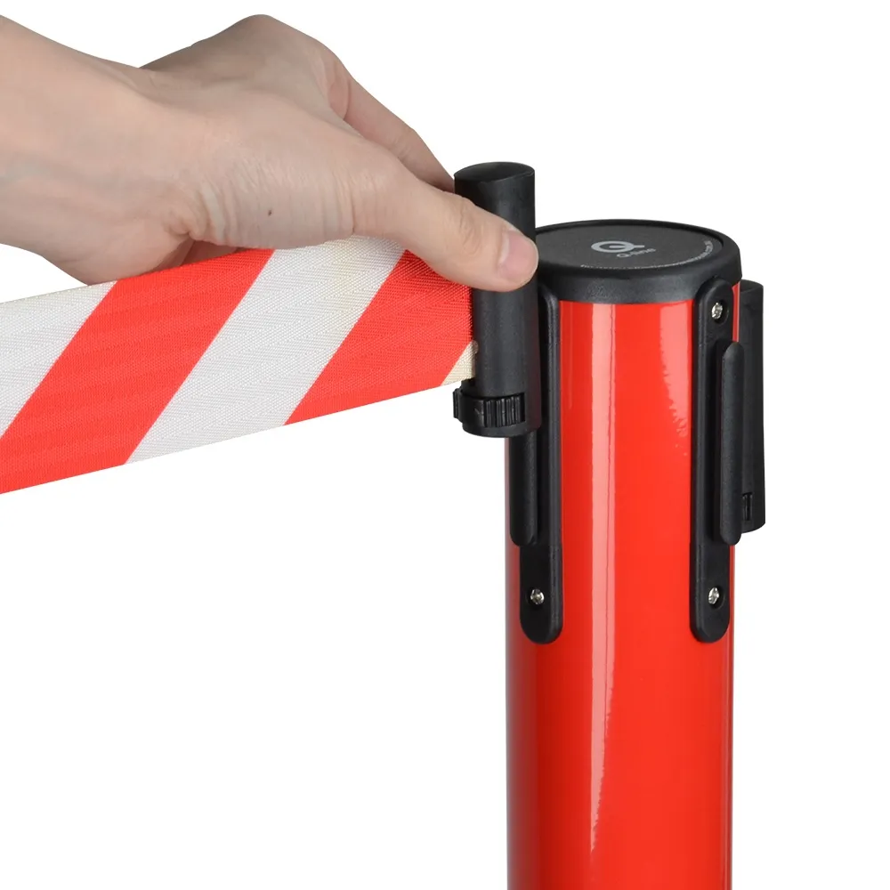 The retractable tape barriers have a powder coated red post, helping passersby to easily identify the stanchion when placed in hazardous areas for their benefit. The crowd control posts utilise a 3m retractable belt made of heavy duty woven nylon that features a red and white diagonal stripe that is perfect for use (typically) around fire equipment and other special areas that visitors should not enter. The end of the belt has a tamper-proof clip to help keep the belt connected.