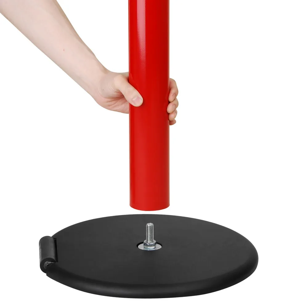 • Red stanchion post is made from powder-coated steel to offer a durable stand for long-lasting use