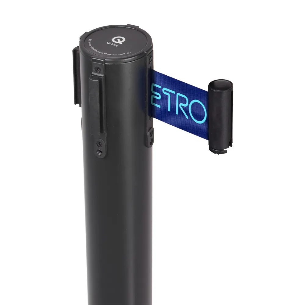 The retractable barrier tape is made from nylon with a blue colour that offers a different look that helps draw attention. The crowd control posts is digitally printed on with 1 colour designs to best show your advertisements and logo to promote to people whilst they are in the queue! Printing is done on both sides of the belt to be seen by more customers without taking up additional room to maximise exposure!