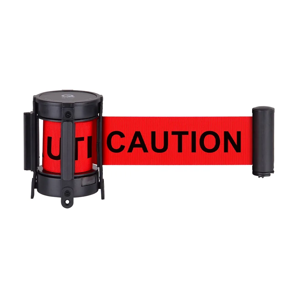 This custom retractable belt features a 1.8m length, easily accommodating different locations wishing to make a queue or section of particular sections. The custom barricade tape has a 4-way adapter on top as well, making it easy to go out in different directions and attach to wall mounted clips or other stanchion posts.