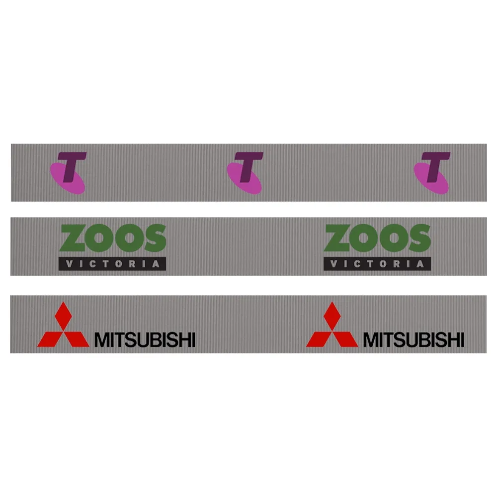 - Custom barrier belt has 2 colour printing of custom designs onto woven nylon grey belt