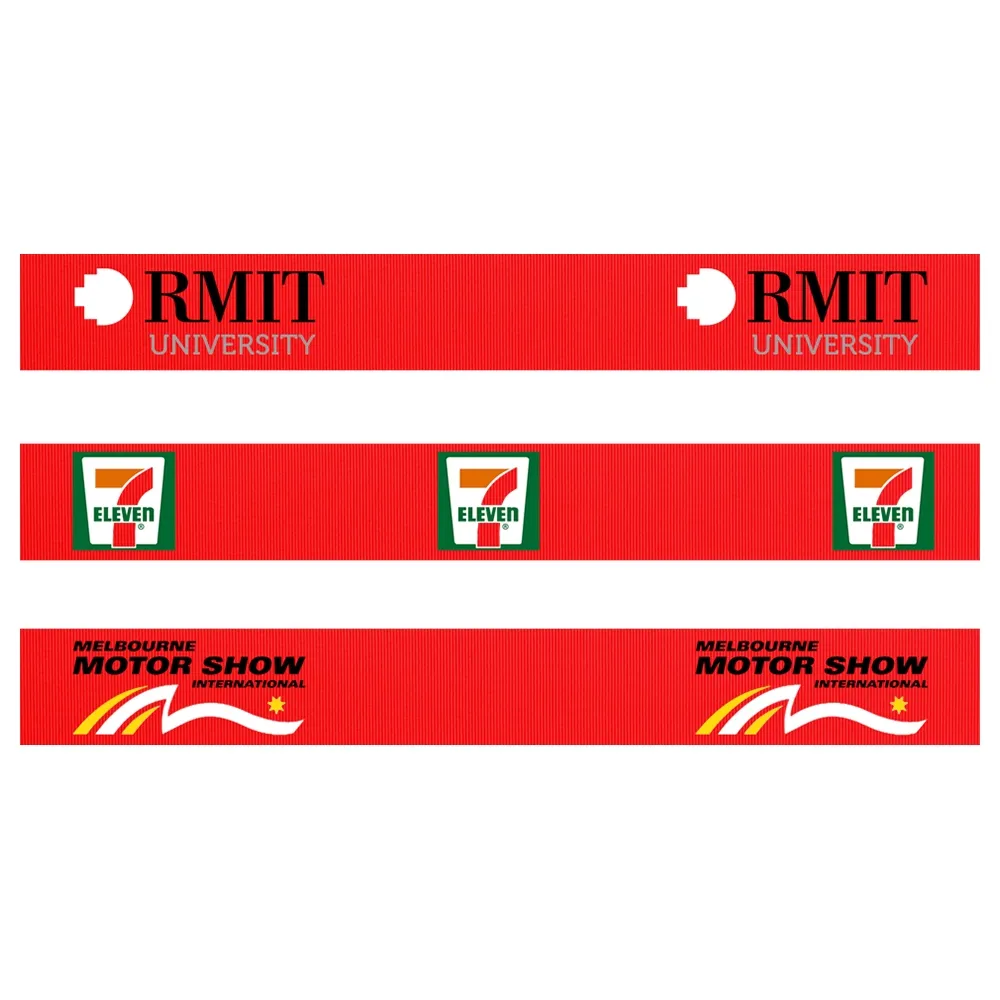 - 3 colour custom printing on red woven nylon belt shows designs in vivid colour to draw attention