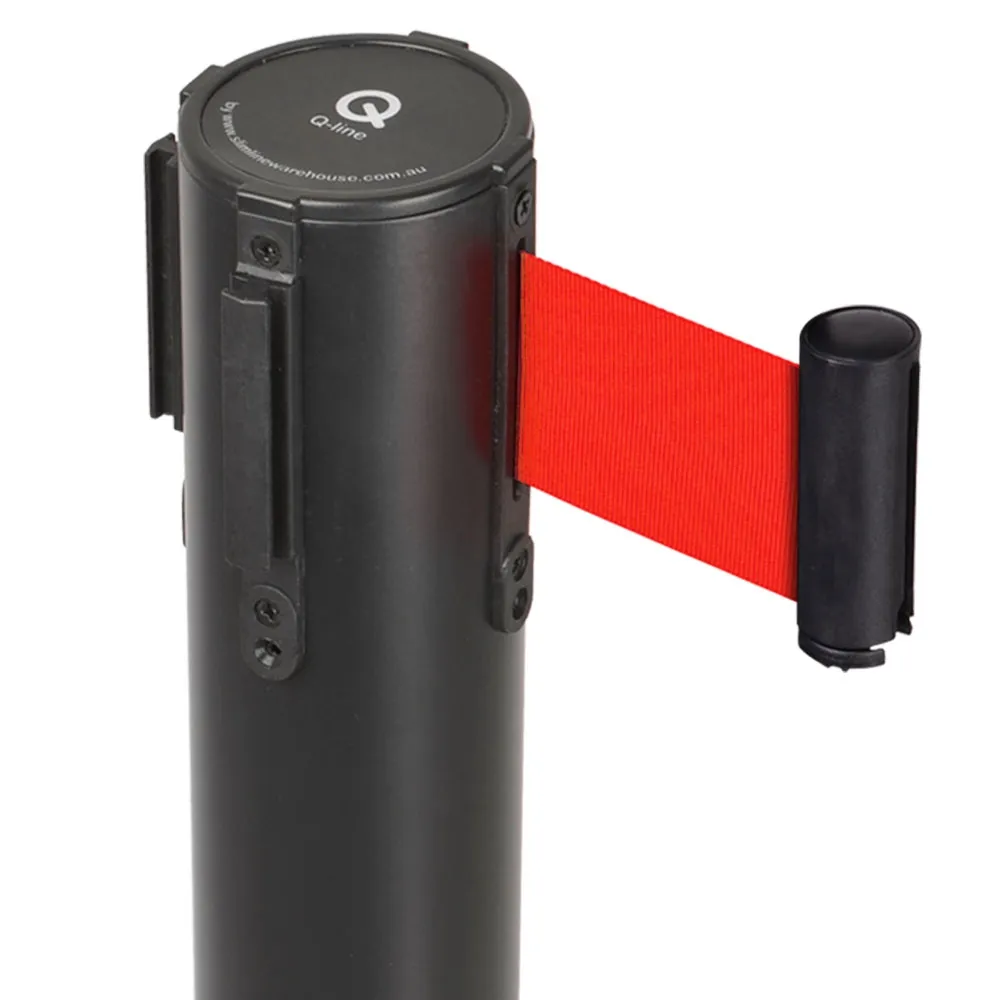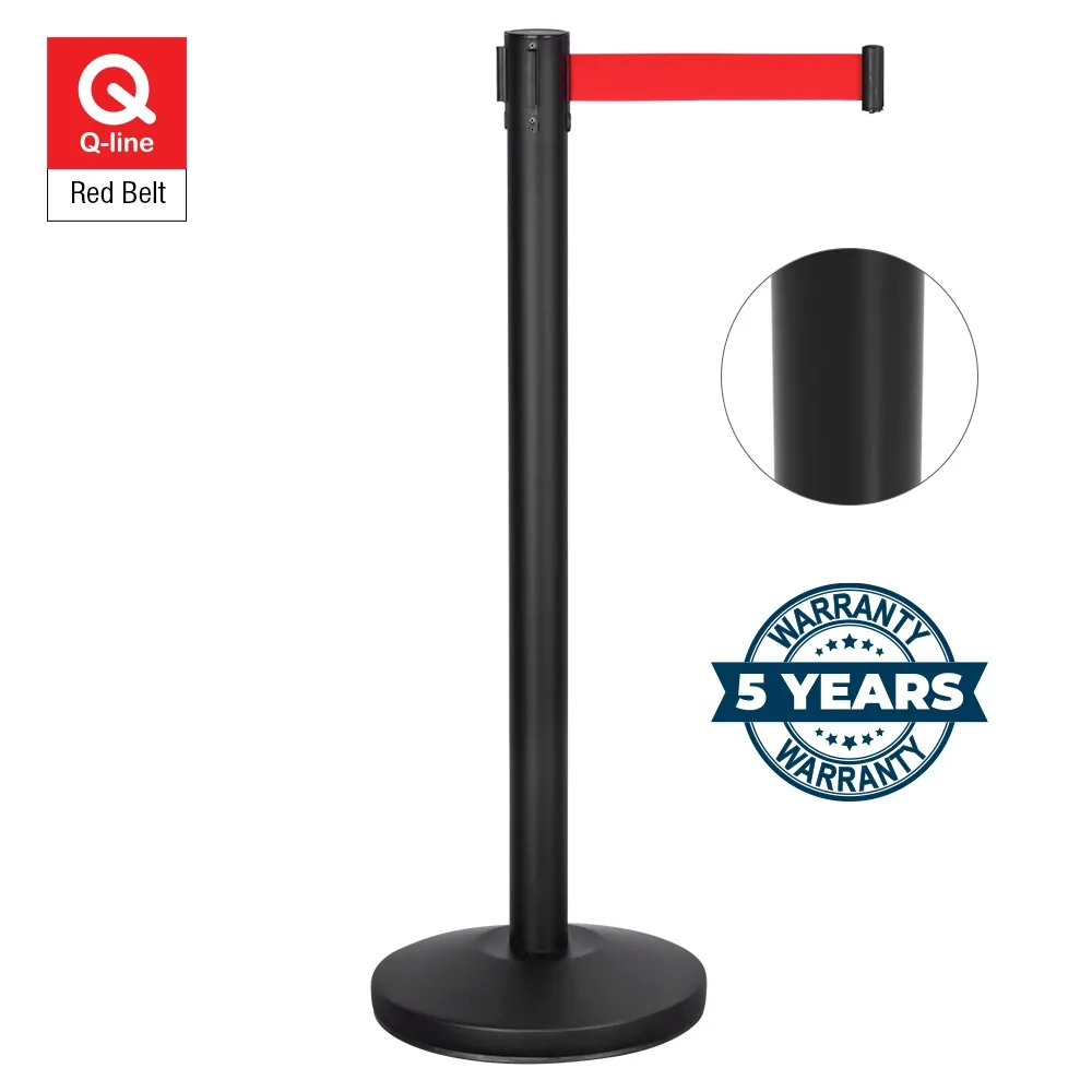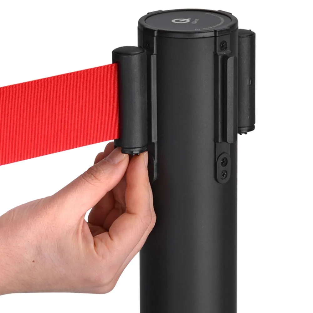 Queuing management barriers, retractable belt posts, and other crowd control systems are made from stainless steel in order to provide a durable display that will last for years to come even in heavily-trafficked areas. The post is powder-coated matte black for a stylish look that works in any décor and offers a wonderful contrast to the deep red of the belt!