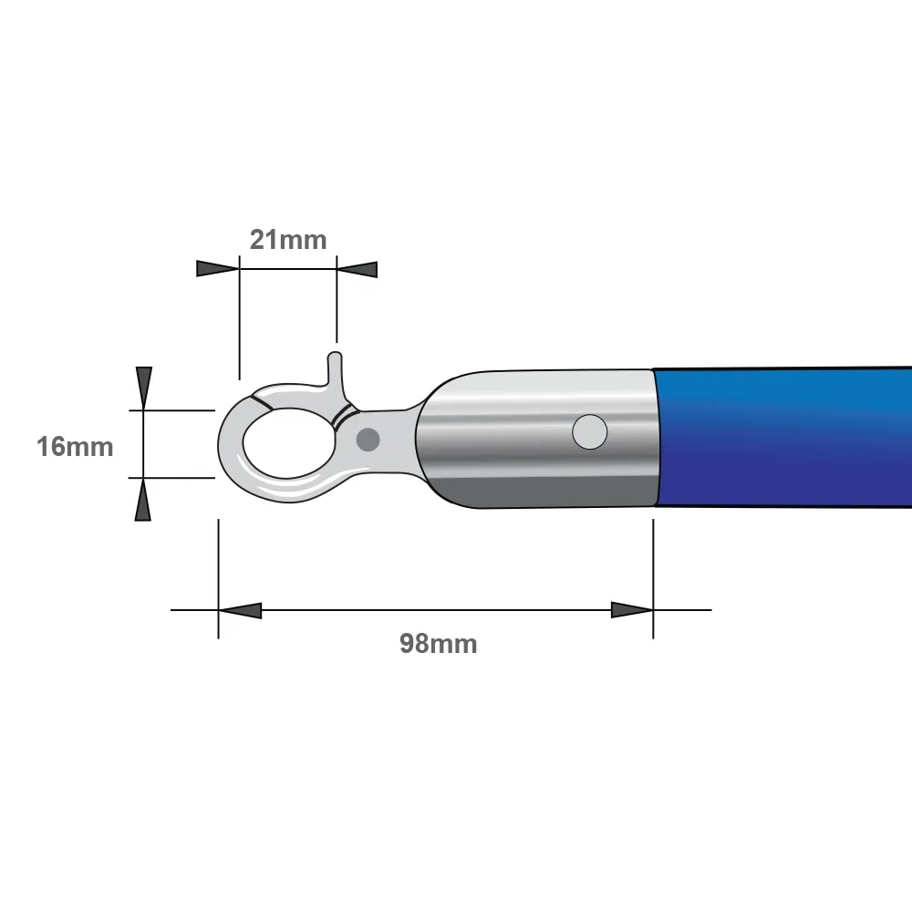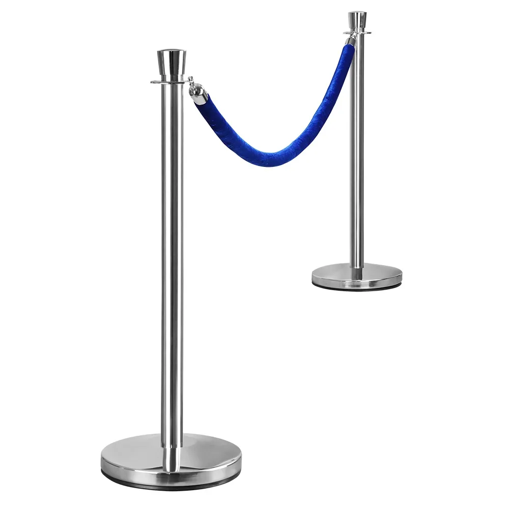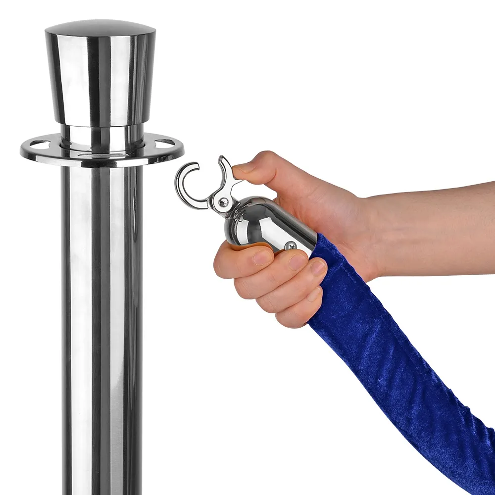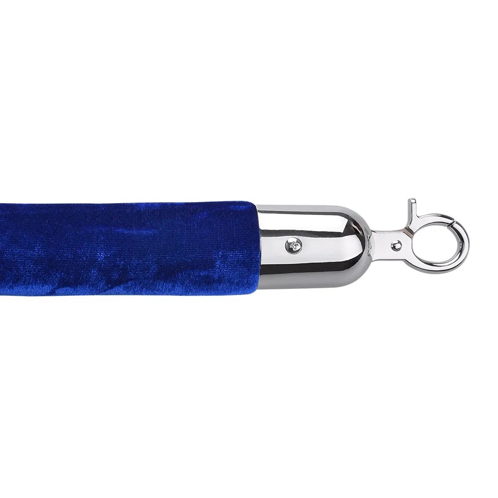 The stanchion rope or velvet rope has 2 silver hooks attached to each end and are 2 metres in length which means your rope barriers or rope stanchions can stand approximately 1.8 metres apart. The stanchion ropes are created using a foam core and are covered in blue velvet. The quality silver hooks simply clip quickly onto your barrier posts.