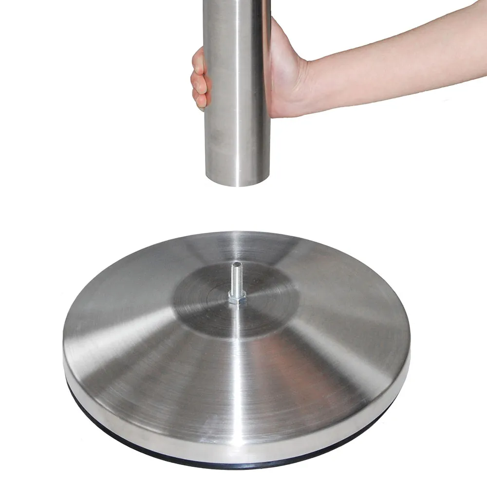 - These stanchions are weighted to provide stability. They are also designed with a rubberised rim on the base to protect floors from being scratched.