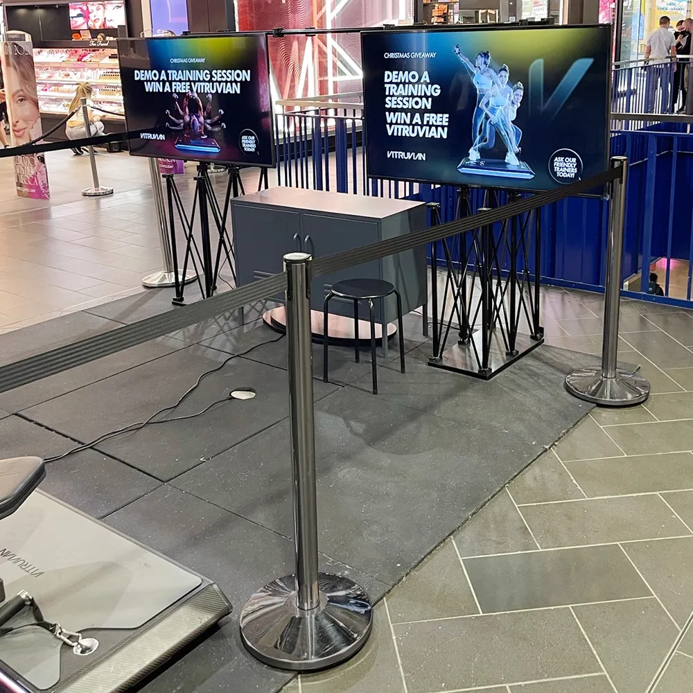 The retractable barriers or queue management stanchions can be used in places such as shopping centres, restaurants or conferences. Using these stanchions will give you crowd barrier control for lines or queues. Finished in brushed stainless steel, you will find that the queue management rope barriers will suit any interior space where queues or lines need to be created with crowd barrier units.