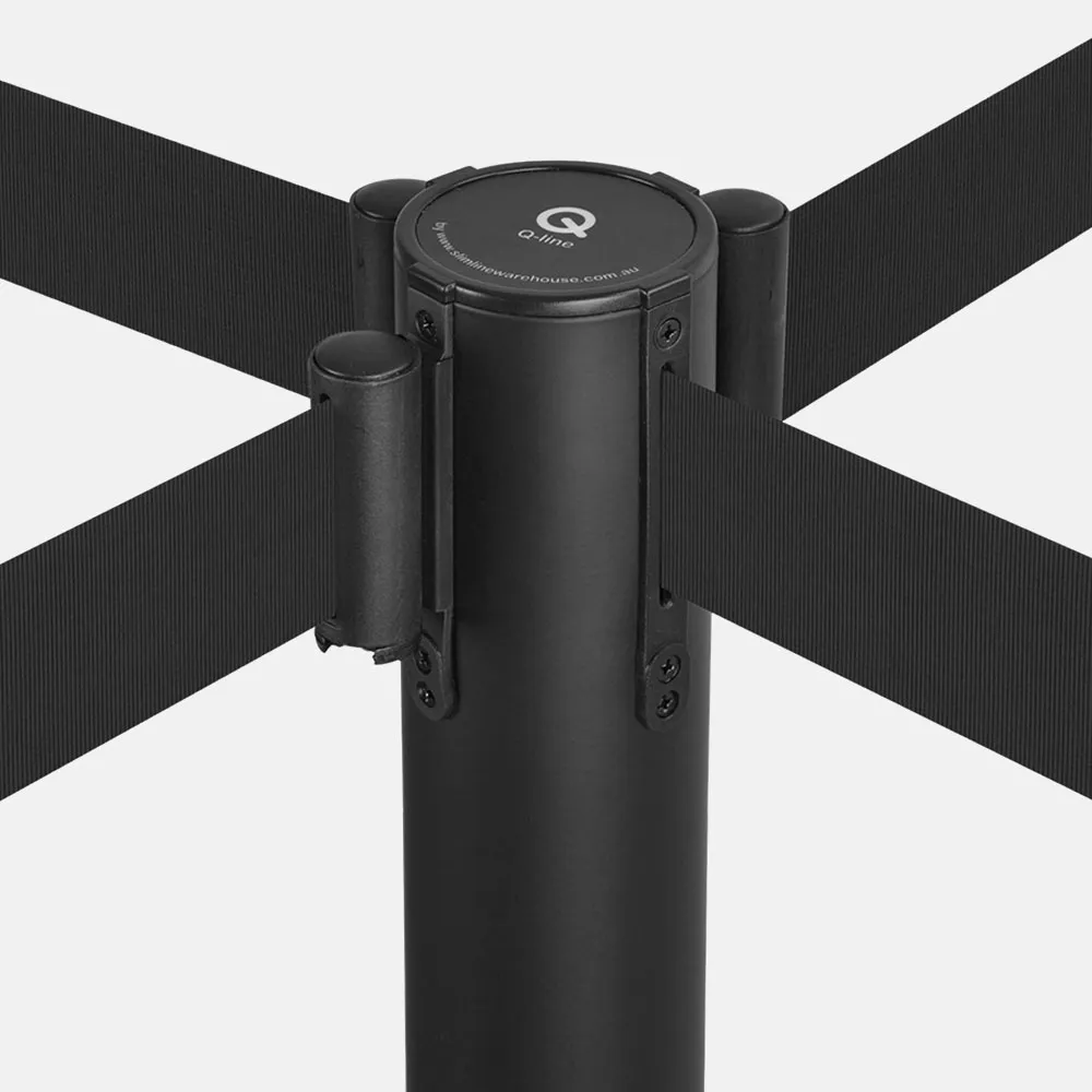 • Retractable barrier posts can also be fitted with sign holders that fit onto the posts. Q-Line barrier posts are a modular system and can be configured with many Q-Line retractable posts.