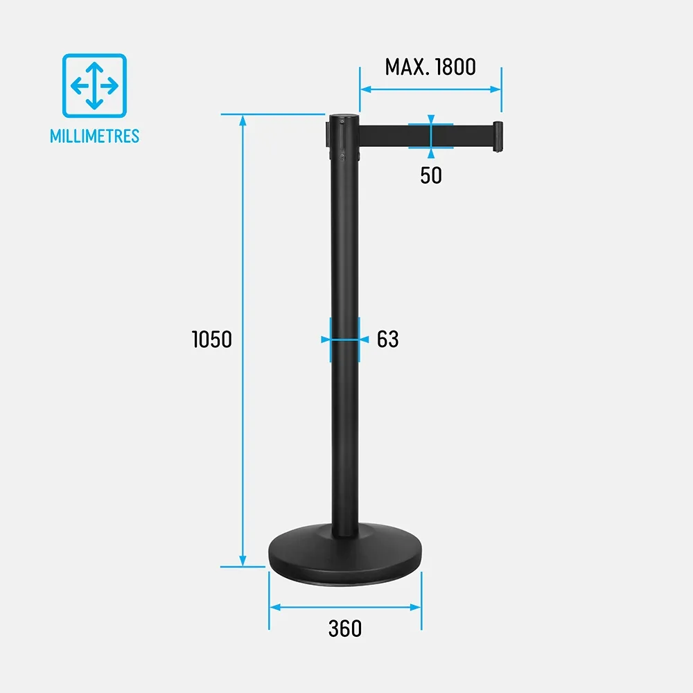 • Retractable barrier posts include 1 post at 1.05 metres and 1 retractable belt at 1.8 metres in length. We package the stanchions carefully to minimise the chances of damage during freight.