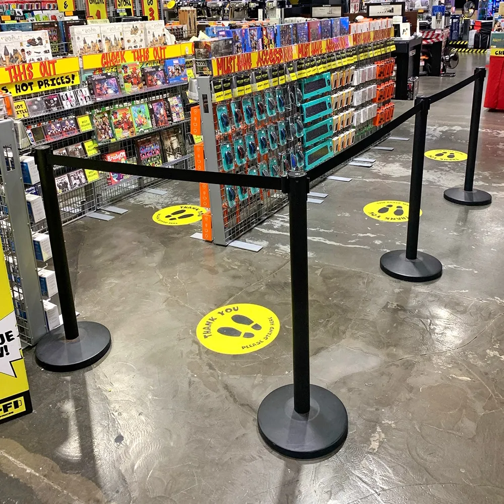 • The barrier post bases are weighted and have a rubberised rim- all to prevent the chances of slipping and scratching floor surfaces.