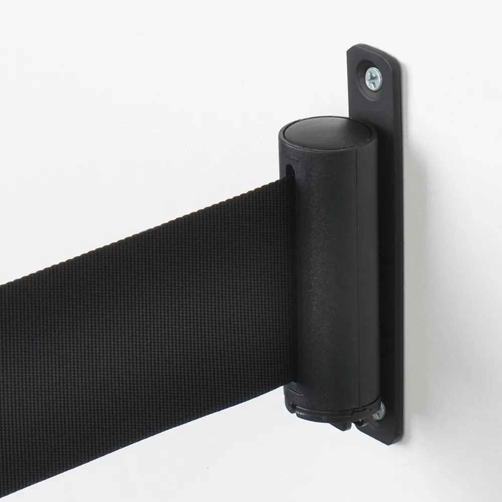 This retractable barrier wall receiver is used together with retractable barrier wall receivers or retractable barrier posts from the Q-Line range. Easy to use, they simply need to be mounted onto a flat surface- all wall mounting hardware is included to have you creating your barrier within your premises. The retractable barrier belt has a clip on the end that simply slides onto the wall receiver to create a barrier.
