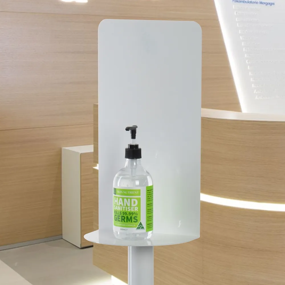 - 210 x 150mm semi-circle shelf design for holding hand sanitising gels & wipes