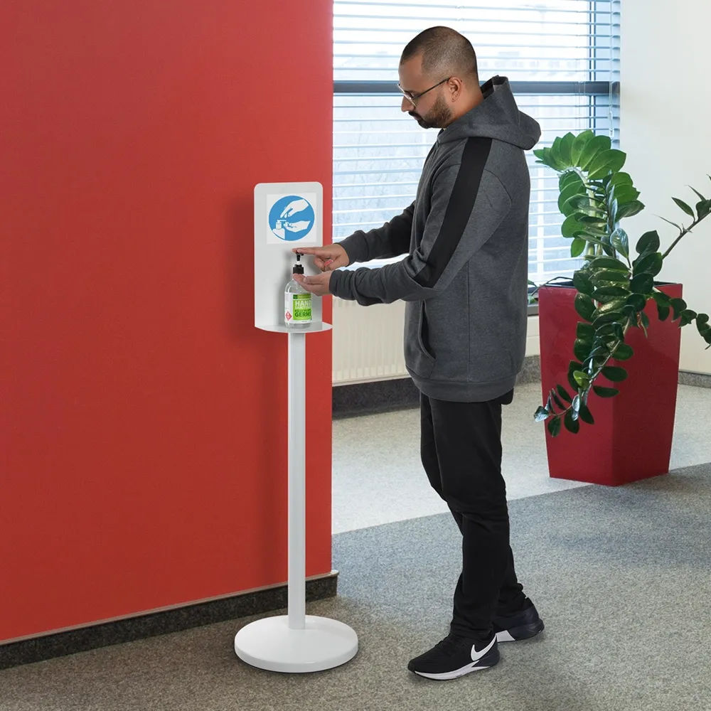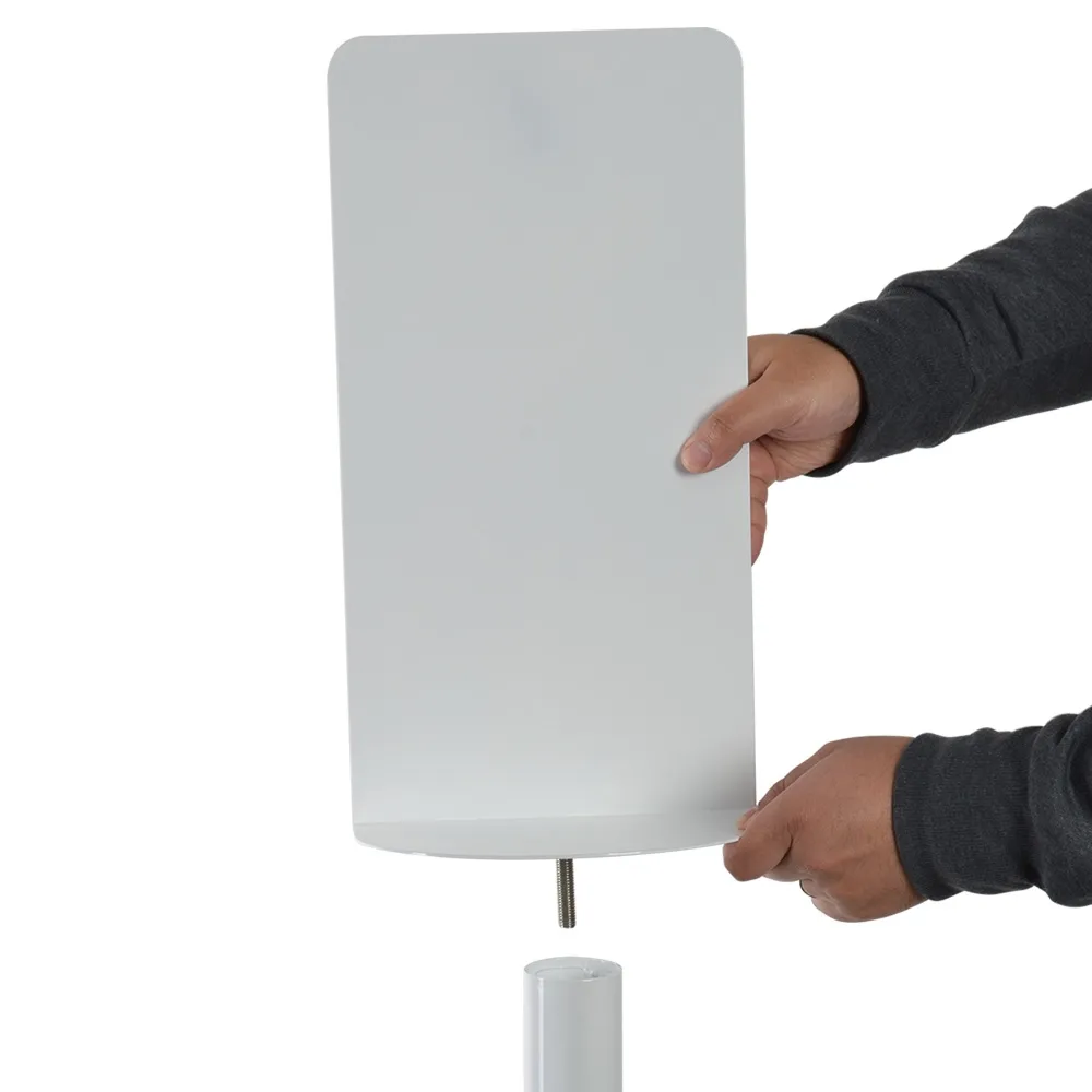 This shelf topper for pedestal stands turns existing lobby stands and signage displays into hand sanitising stations! Fitting atop a steel poster stand post, this accessory can be installed in seconds with no tools to complete installation! The platform tightly attaches to existing poles in our CHNF range by being hand screwed into the top of a post after removing your existing signage frame. This display includes a large 210 x 150 x 450mm area that can have signage affixed on either side to alert passersby to the hand sanitising station or for placement of promotional posters.