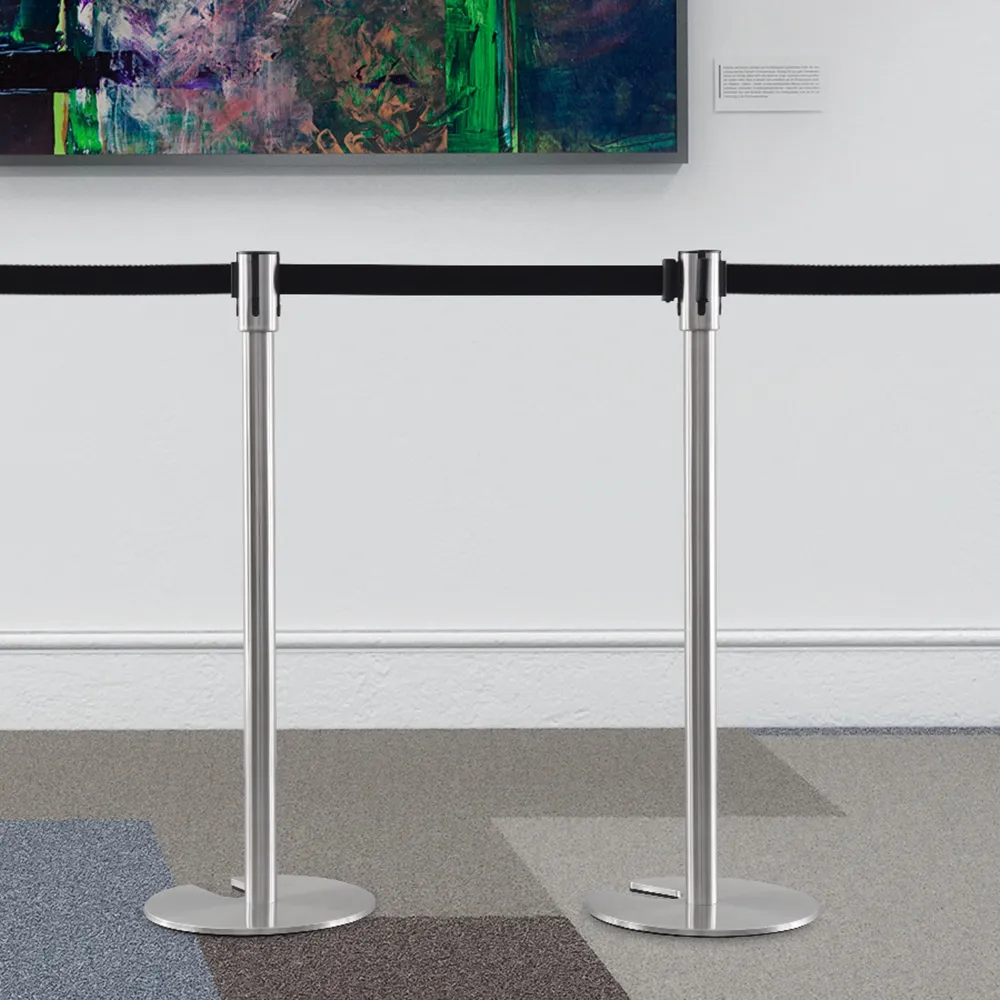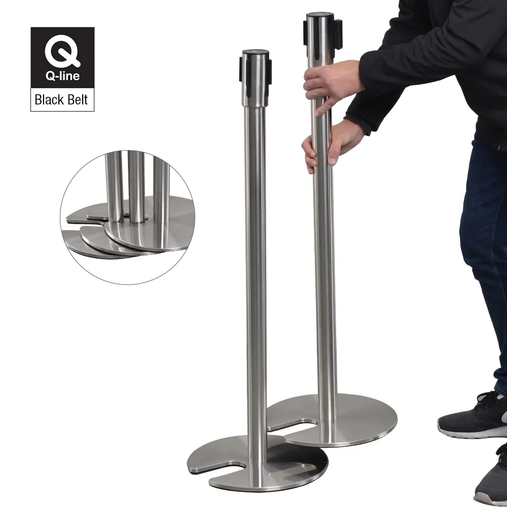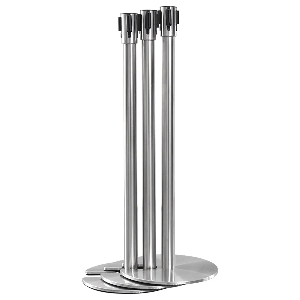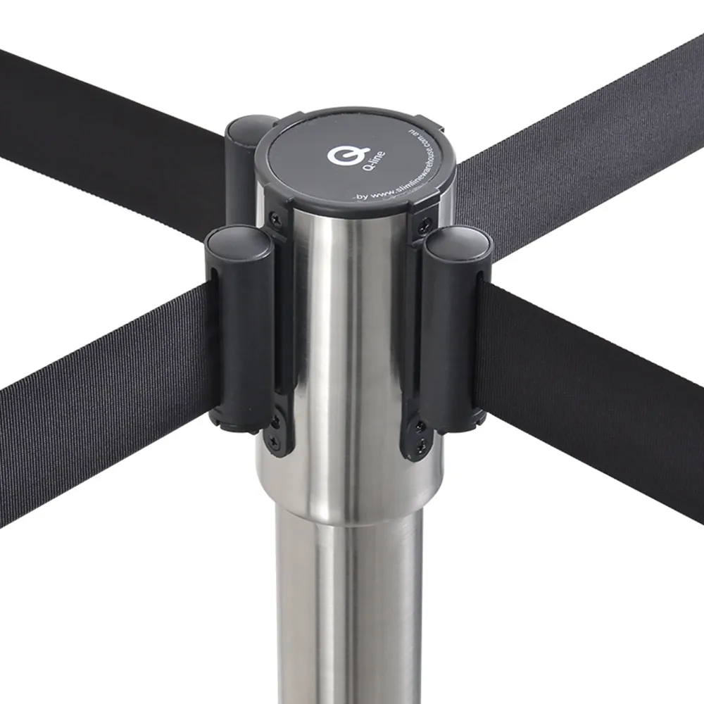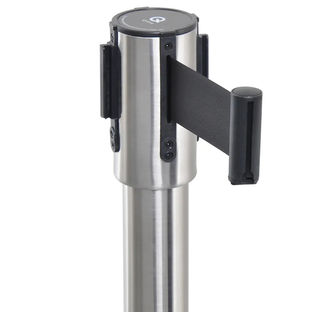 The retractable belt stanchion, like crowd control posts, have a 5 year warranty to provide peace of mind with your purchase. This unique line management pole features a cut-out in the base that allows multiple units to be stacked together in a small space. This allows airports, restaurants, shopping centres, train stations, bars, restaurants, movie theatres, and more to maximise their storage space whilst still having plenty of these units on hand for different events. The cut-out easily slips over other posts to safely remain in place when not in use.