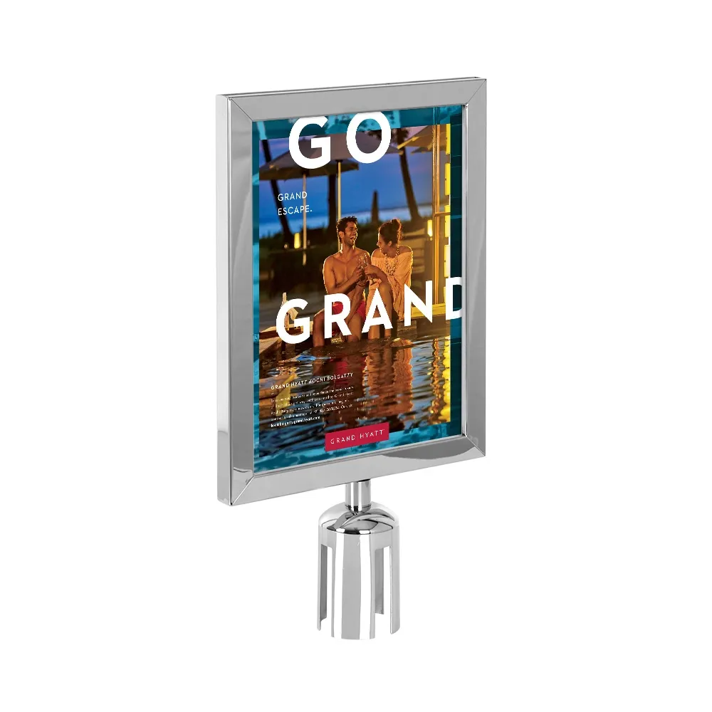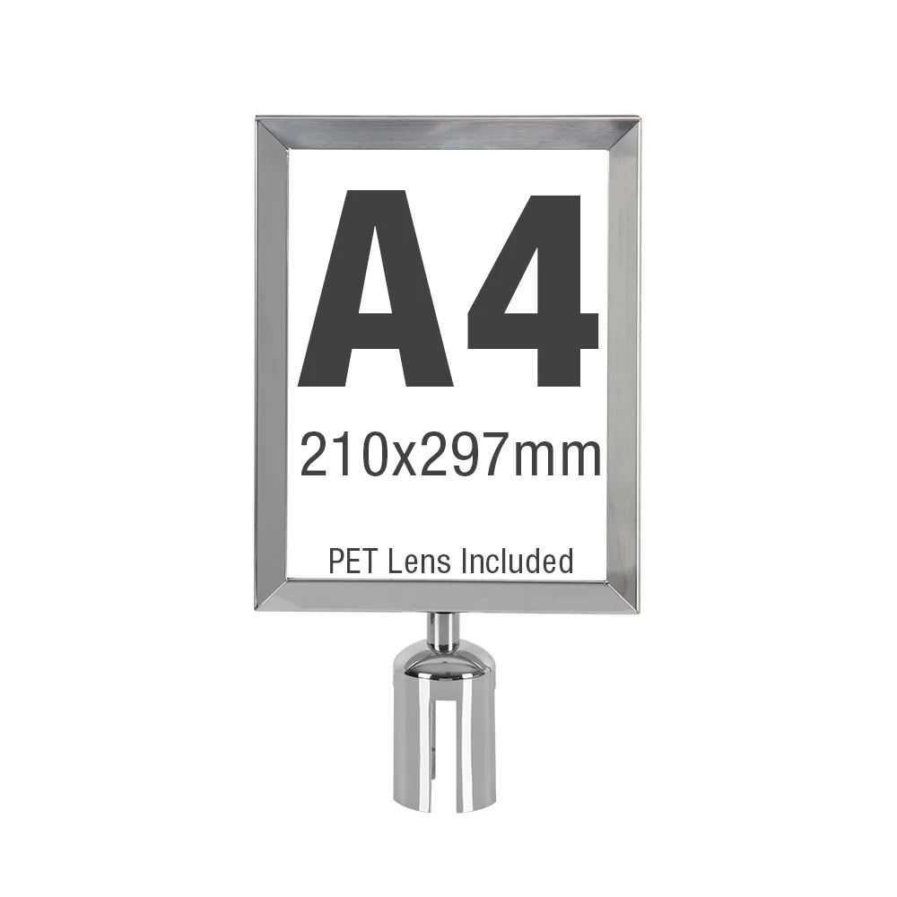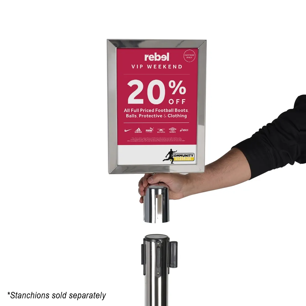 - Stanchion sign topper holds A4 (210 x 297mm) posters on both sides of frame