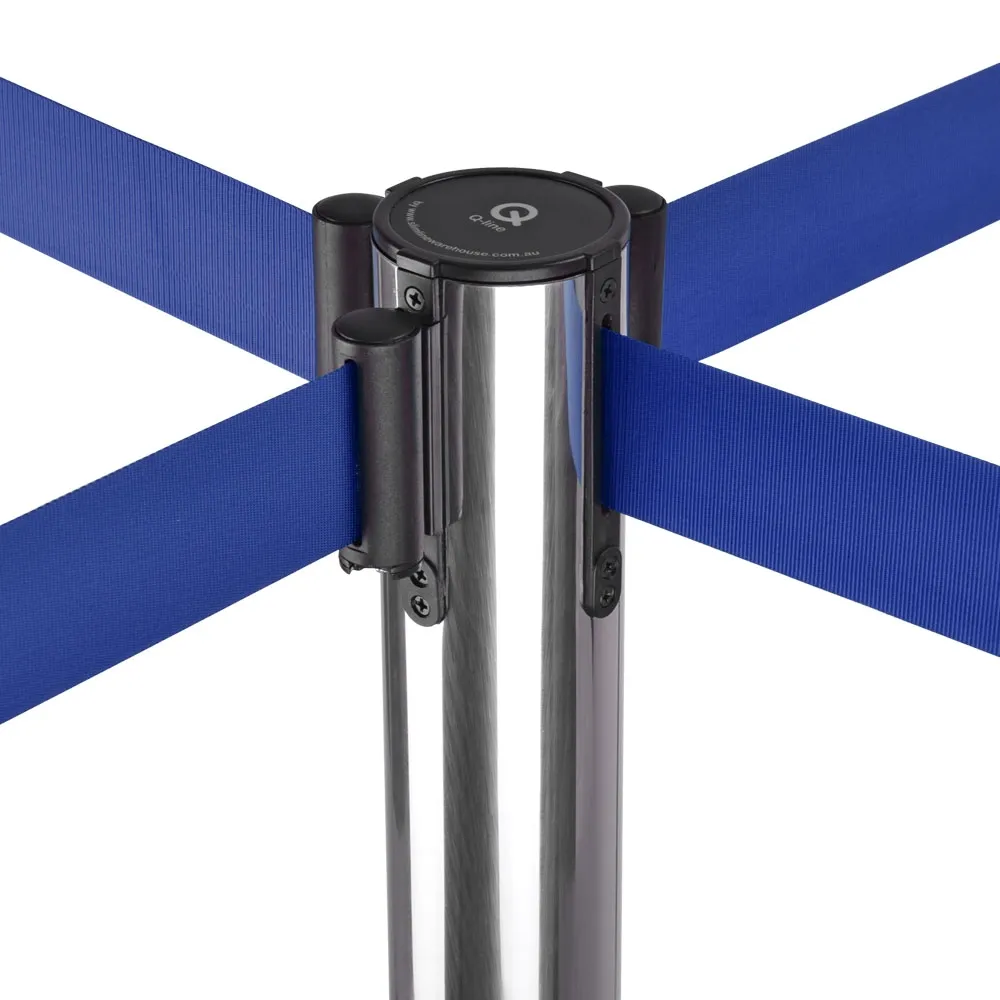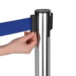 These retractable belt stanchions have a weighted base for a stable display, and features a rubberised bottom that helps protect the floor from scratches! These custom print barrier posts have logos in 1 colour printed on both sides of the belt for a new way to advertise your company name and maximise space. The belt is 1.8m long and made from blue woven nylon, offering a stylish look that easily reaches out to attach to other posts or wall clips.