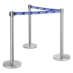 These crowd control queue barricades, retractable belt stanchions are made from stainless steel to offer a durable display that will last for years to come. The silver finish fits in great with any décor and offers a professional look. The end of the belt has a tamper-proof clip to secure the barrier post to a wall clip or other stanchion. Use the 4-way adapter to easily create a queue or section off an area at your location! Assembly requires no tools and only a few minutes to complete.