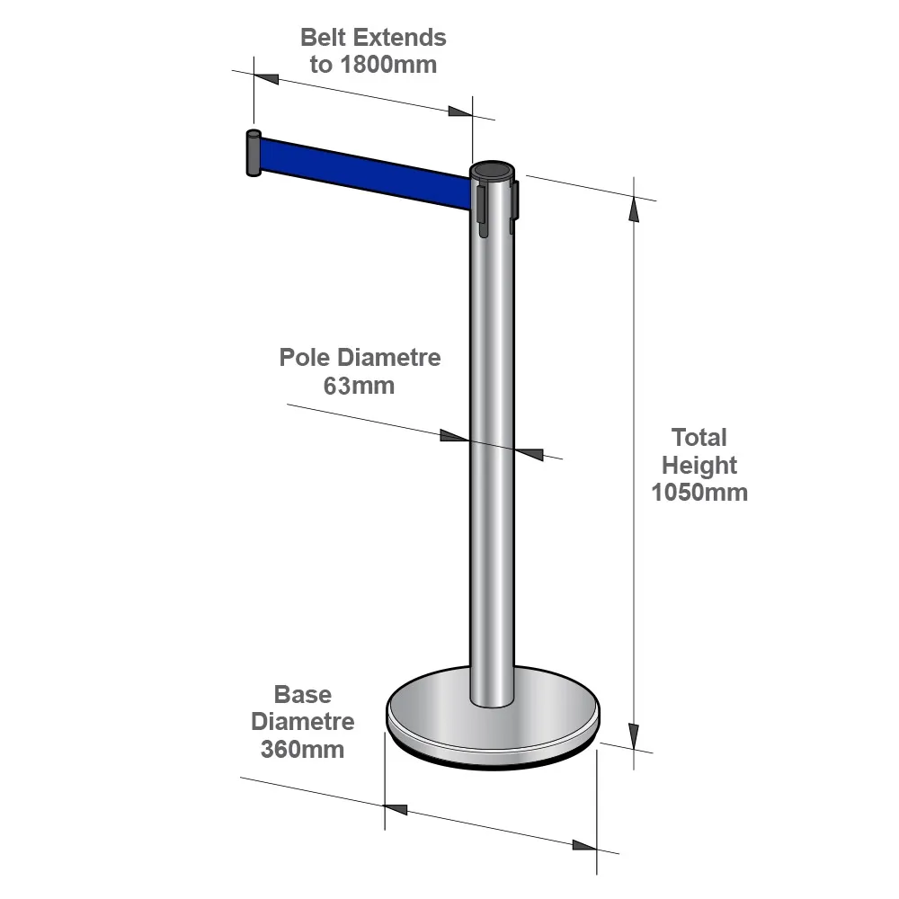 - 1050mm tall stanchion with custom printed belt