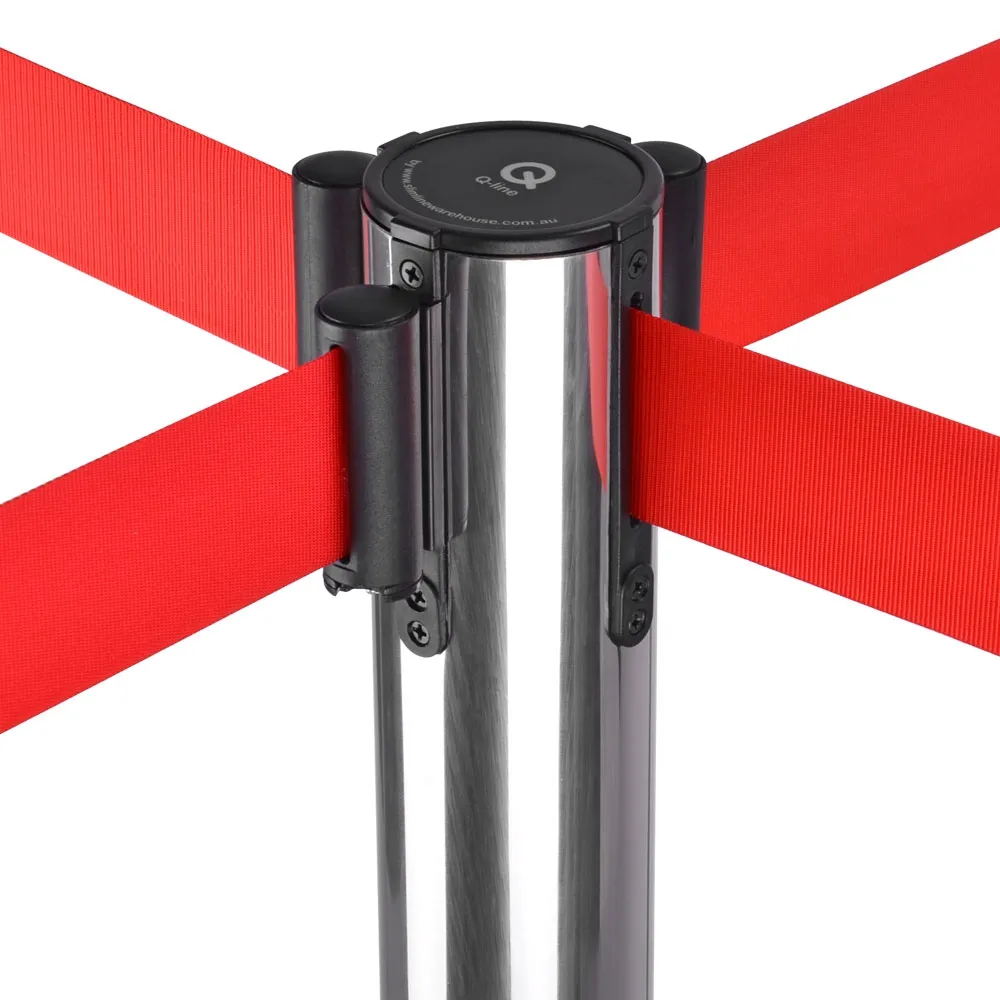 The retractable barrier Australia has a 4-way adapter top the post to connect to other bollards or wall mounted clips in different directions, making the creation of a queue or cordoning off an area easy. The crowd control posts are made from stainless steel with a silver finish, offering a professional look that will last for years to come in any location. Assembly requires no tools, as the post and base screw together quickly and easily.