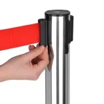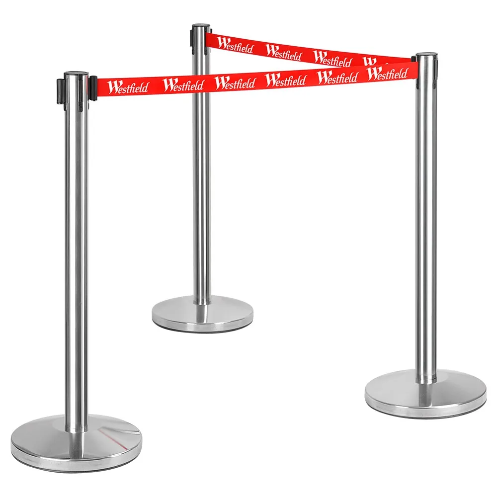 - Retractable barriers Australia feature steel post with silver finish & rubberised base