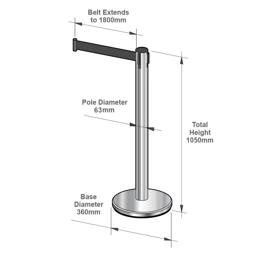 - 1050mm tall stanchion with custom printed belt
