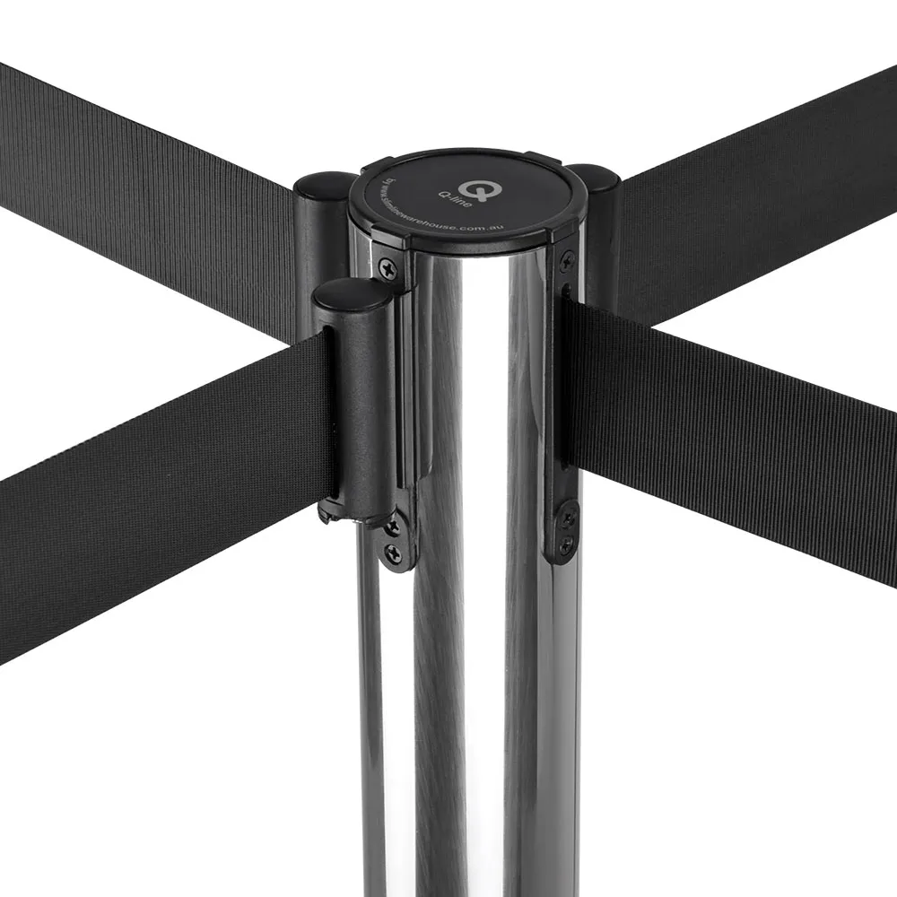 This retractable belt system, queue management barrier is made of stainless steel with a silver finish that provides a professional look in casinos, cinemas, airports, retail stores, museums, and more. The easy to assemble display requires no tools for quick set-up in minutes with the post screwing into the base. The weighted base helps to provide a stable crowd control stanchion, and is also rubberised to help prevent scratches to the floor. The top of the post has a 4-way adapter to easily cordon off areas or create a queue in any location.