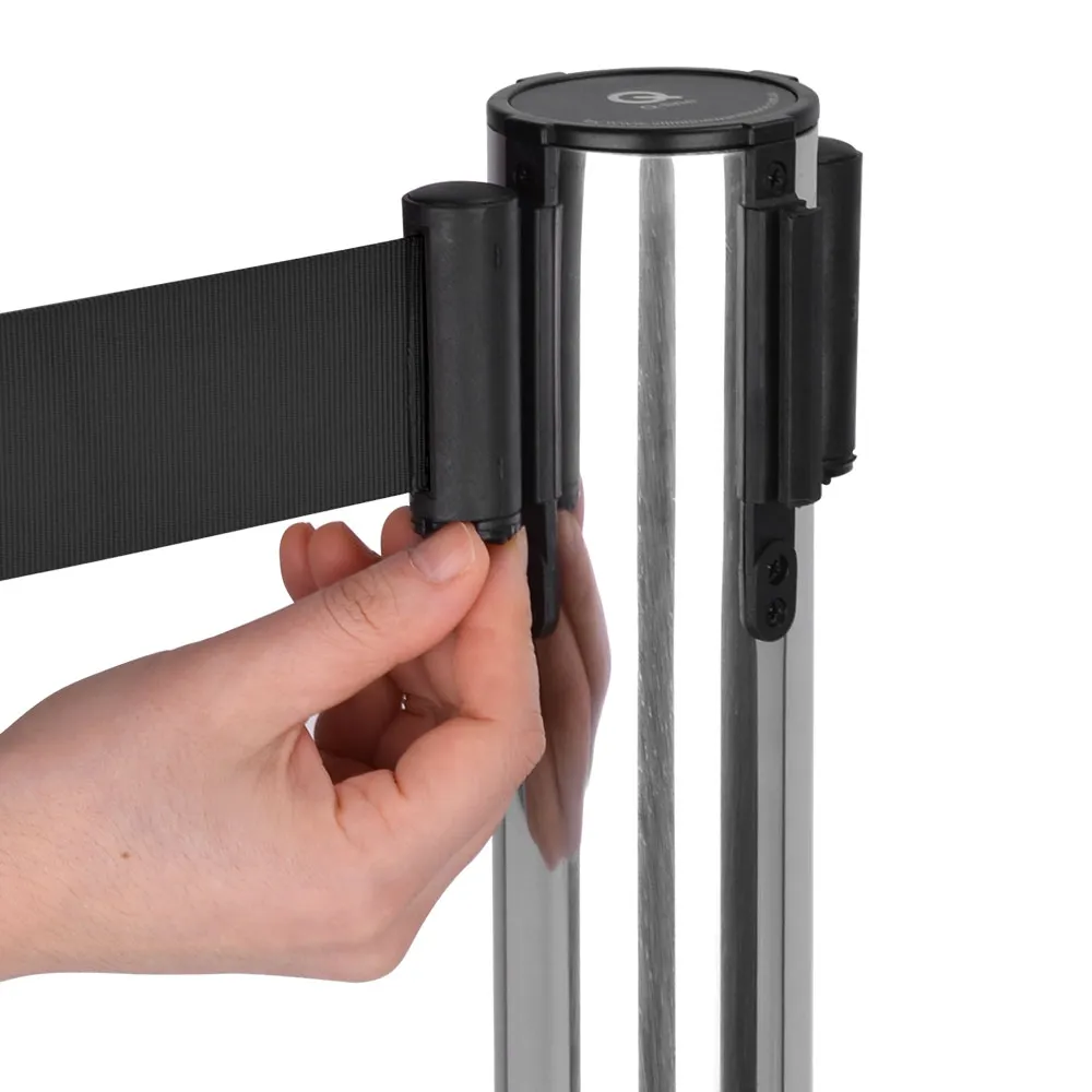 Retractable belt barriers, rope & post systems, and other crowd control stanchions offer you a durable product thanks to the stainless steel design of the post. The silver finish offers a professional look, and the hard-wearing woven nylon belt is black for a nice contrast. Set-up of the queue post requires no tools and only a few minutes for quick set-up!