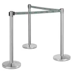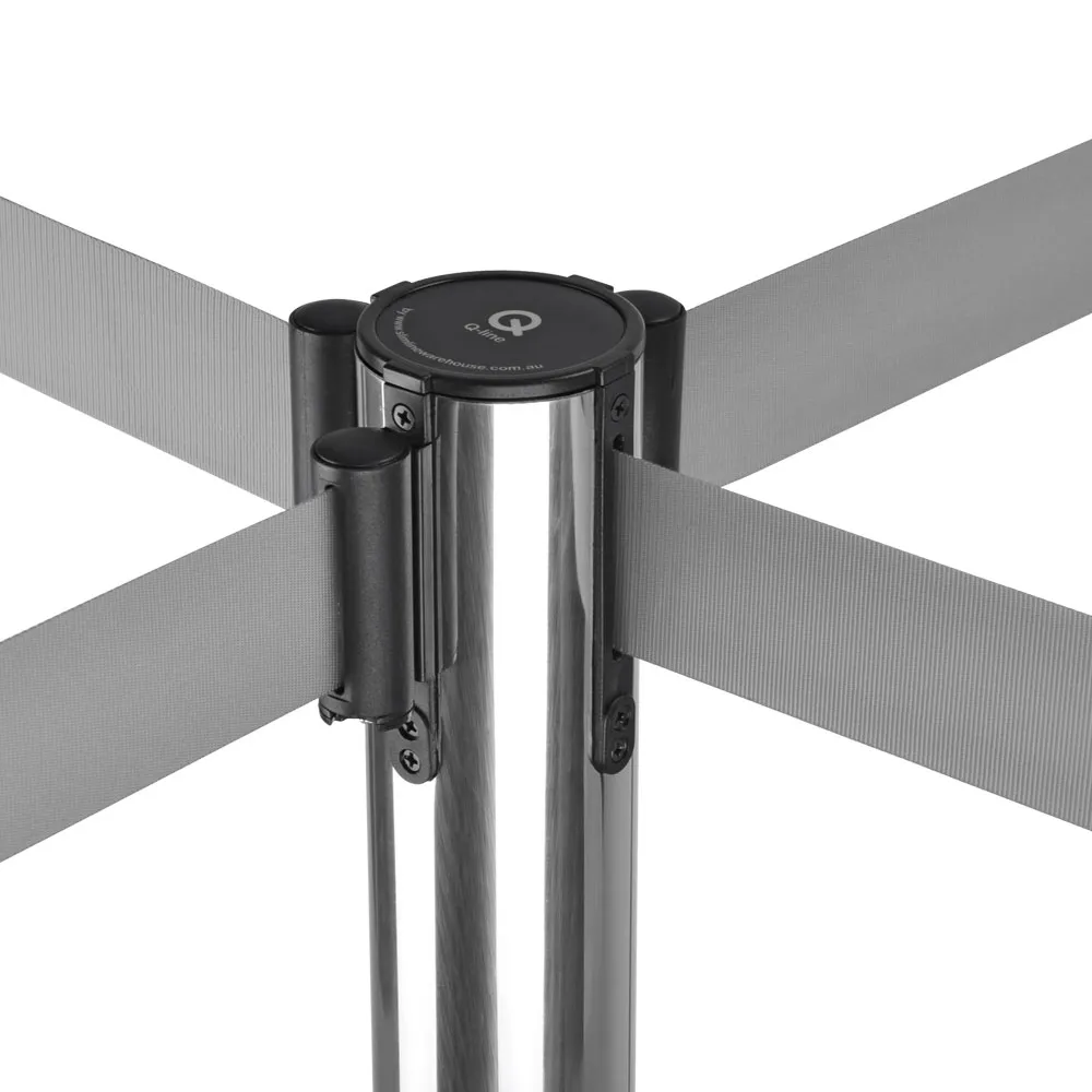 The crowd control queue post, retractable tape barrier features a stainless steel post that provides durability in all areas, with a silver finish to convey a professional look everywhere. The 4-way adapter on top of the barricade post allows you to connect to wall mounted clips and other poles in different directions. The set-up of the pole is easy without any tools necessary, as the base & pole screw together quickly. The base itself has been weighted in order to provide stability, with a rubberised bottom to help prevent scratches to floors.