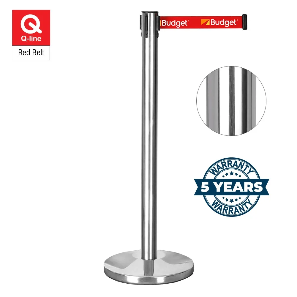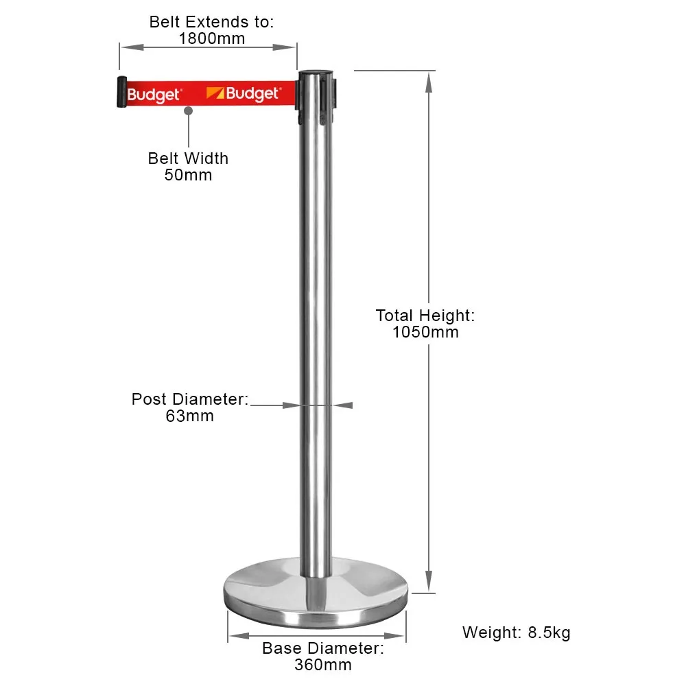 These custom stanchions, retractable tape barriers let you advertise to visitors using custom designs in 3 colours printed on both sides of the belt. The red belt is 1.8m long and made of heavy duty woven nylon, perfect for use in heavily-trafficked areas. The length of the belt also allows it to attach to other posts or wall clips with ease.