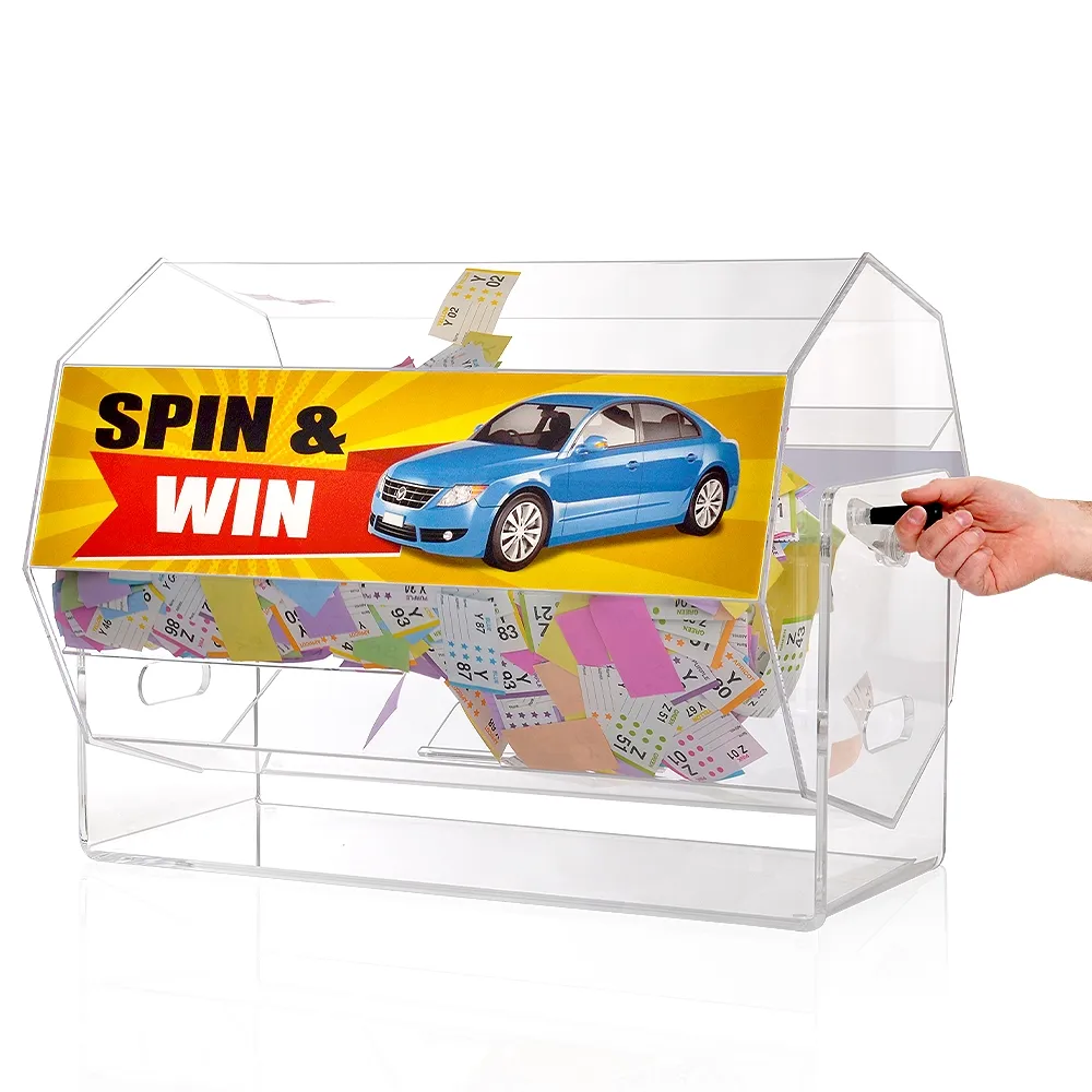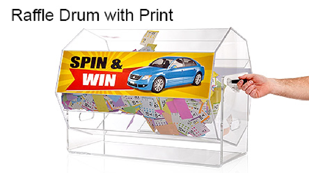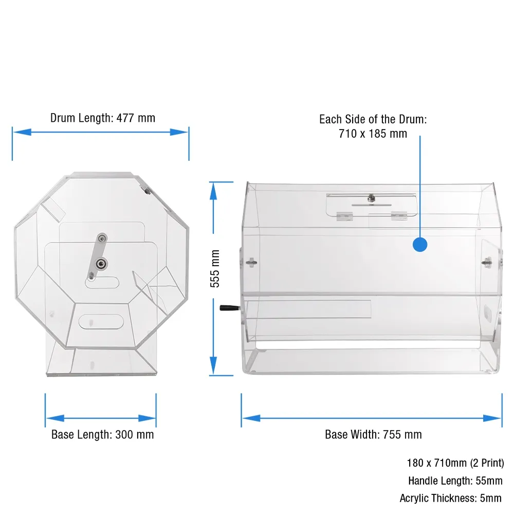 - Large acrylic raffle drum has 477 x 710mm barrel for holding heaps of entry forms