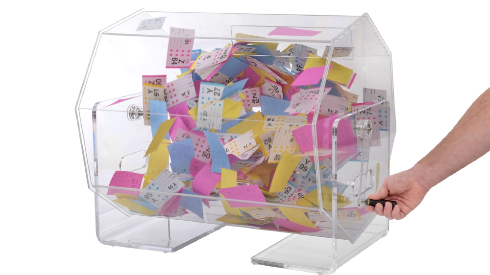 - Spinning barrel rotates 360°, making it easy to mix up entries for random draws