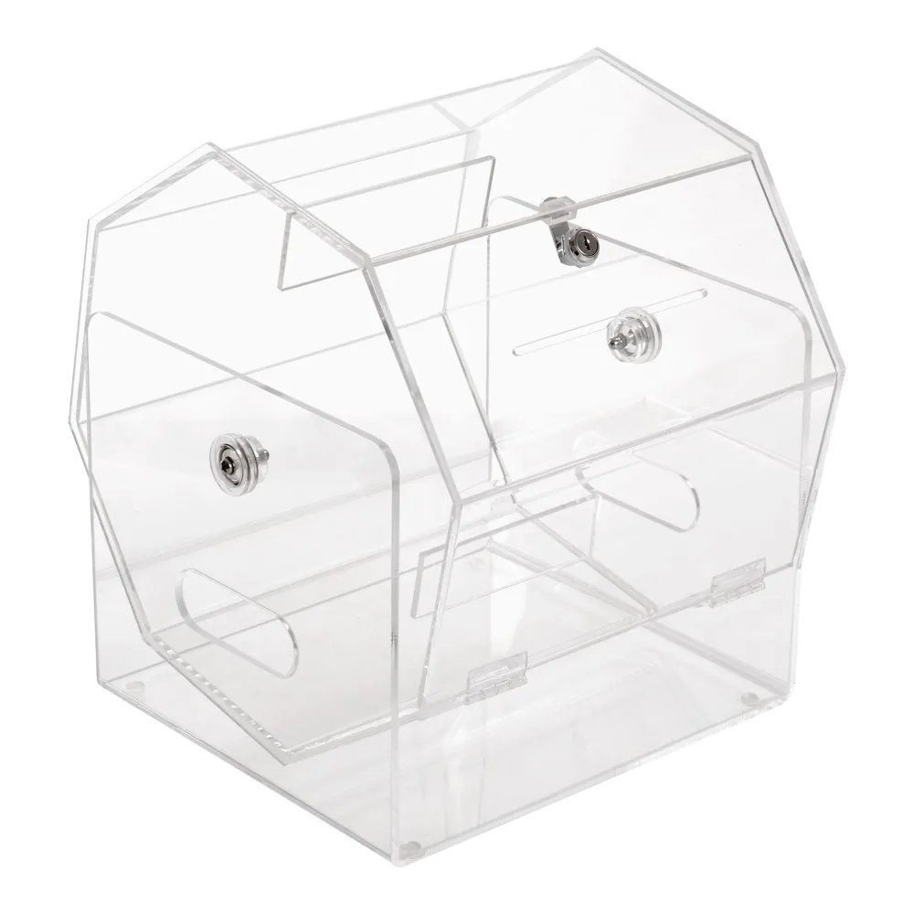 The raffle ticket drums, also called a small acrylic ticket tumbler, is a lockable display with keys included. Using a locking ticket spinner helps prevent tampering, and organizers can quickly access the interior when using the key. The locking door is 302 x 255mm to make it easy to remove winning entrants and empty the interior when done. For placing tickets, entry forms, or other items inside, the door has a 150 x 4mm slot that easily fits most sizes of these items.