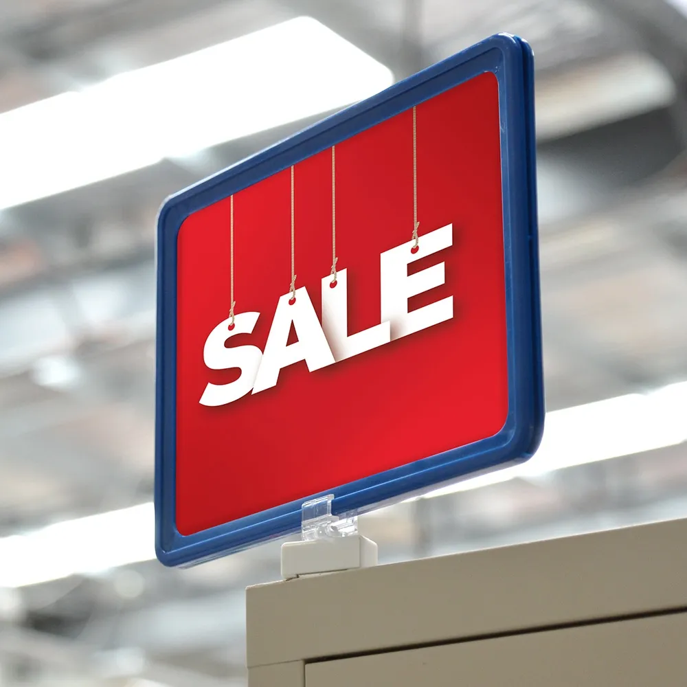 These price tag clips, also known as magnetic sign holders, make it easy to put promotional signage around our business. The clear plastic clip can hold signage frames that are 10mm thick securely in place at your business. The clip rotates 360°, allowing you to position signage to best be read by customers no matter how you have to position the sign holder.