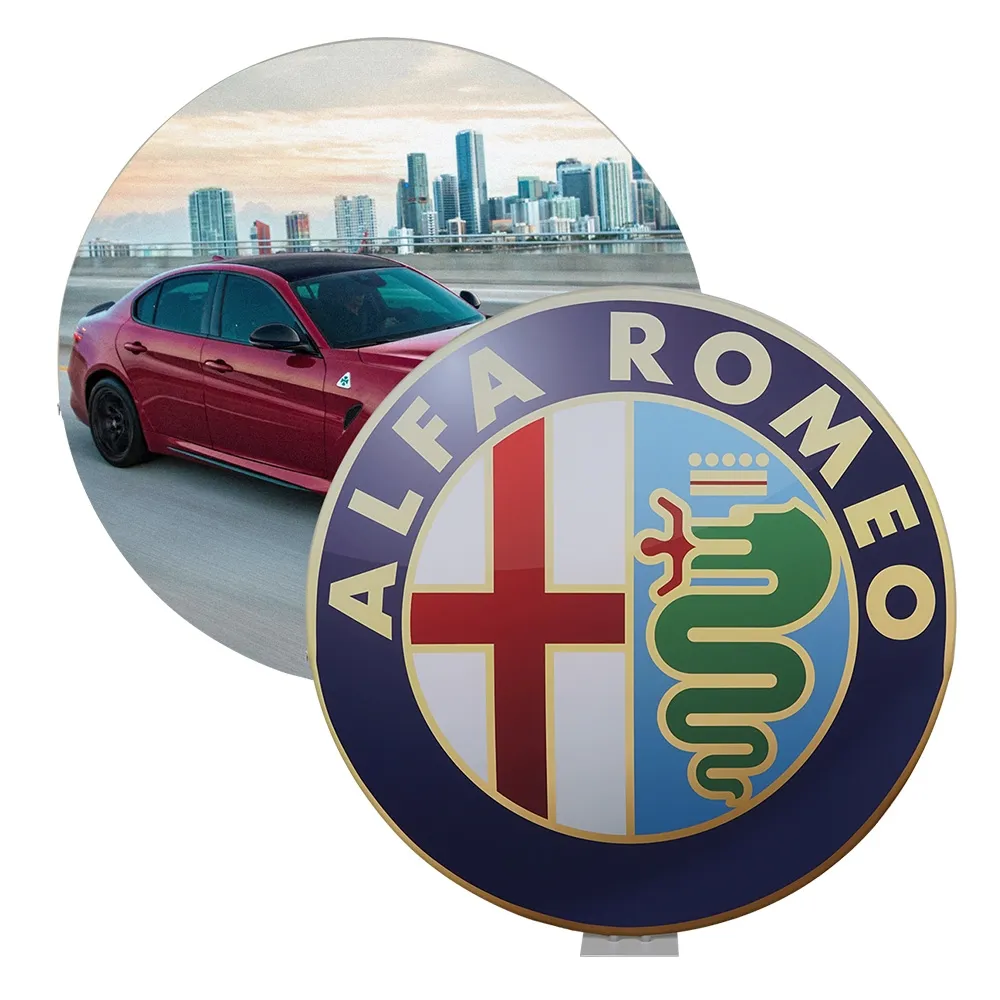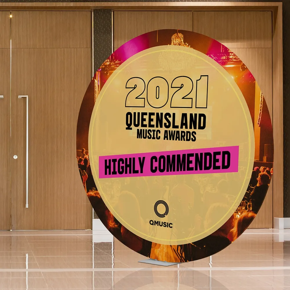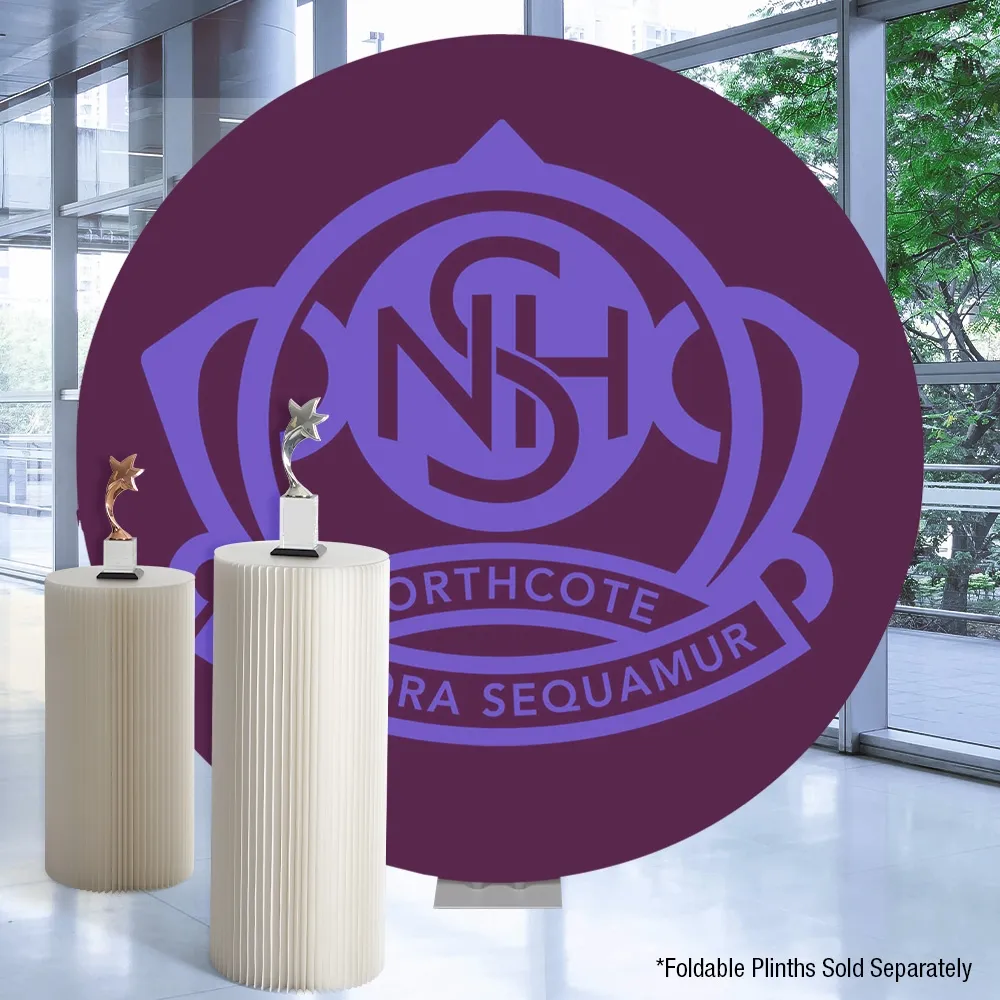 - Circle backdrop features dual-sided printed wrap to be seen in multiple directions at once