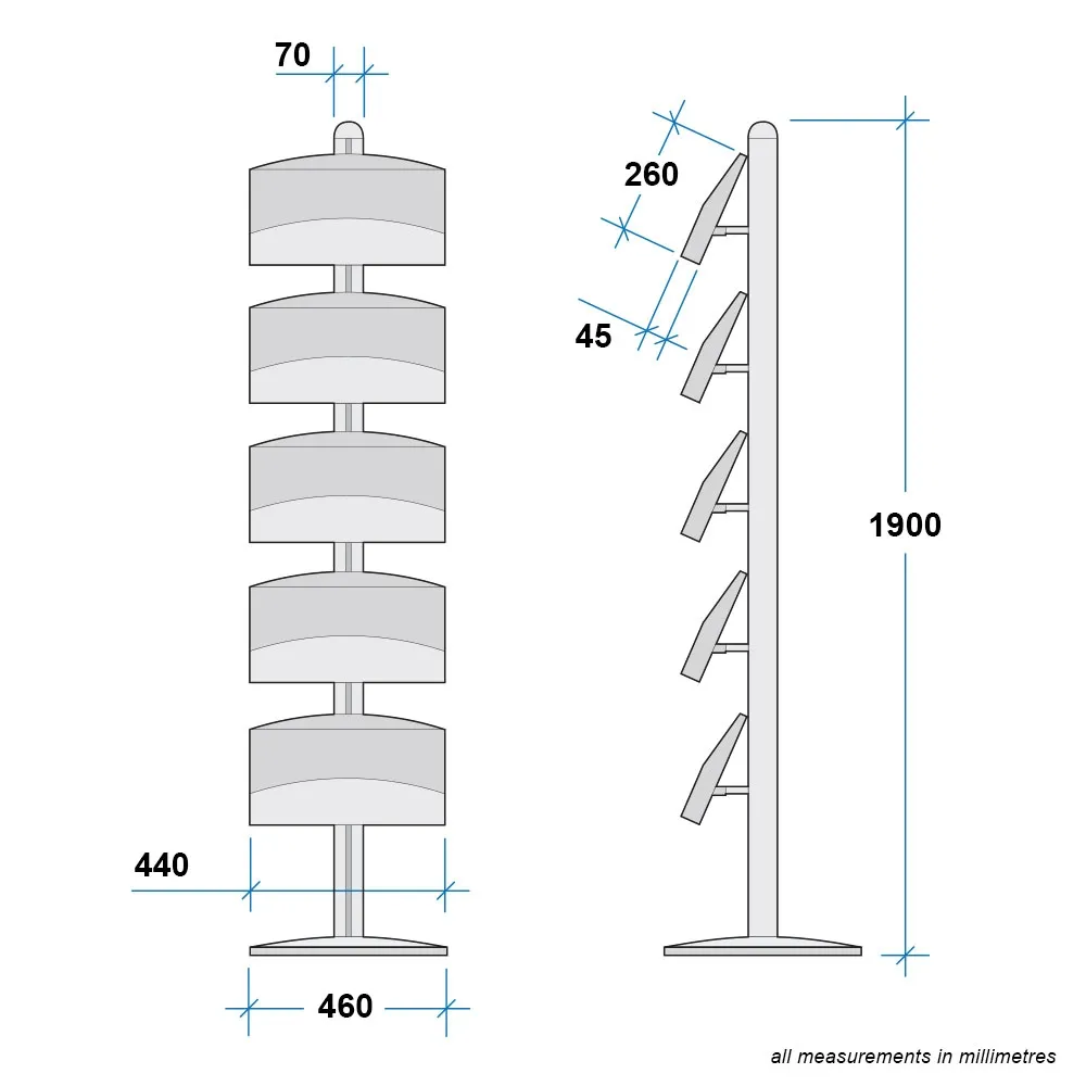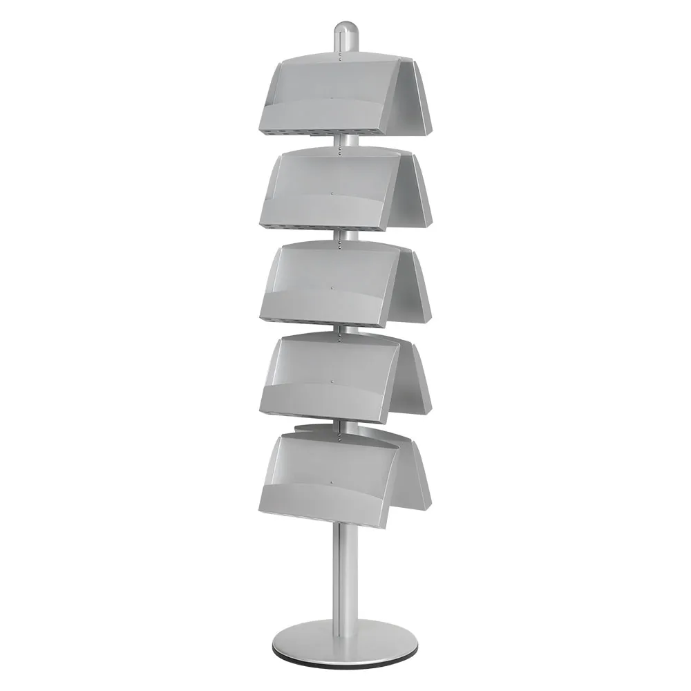 Using this brochures holder at your business is an easy way to provide literature to potential clients to take home with them to learn more about your goods and services. These leaflet displays feature (10) pockets, 5 on each side, that are angled to make reading and taking the pamphlets simple. These metal pockets are also adjustable along the centre pole so you can easily position them exactly as you need!