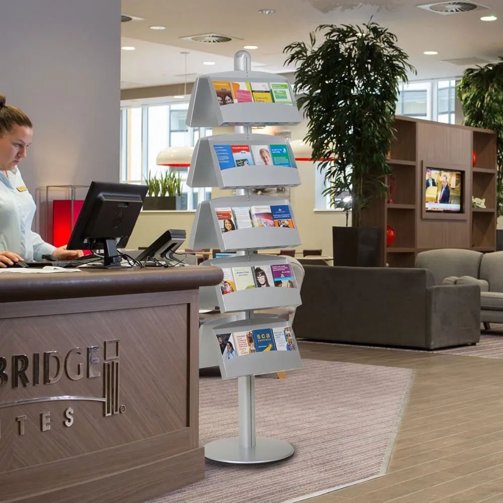 The brochures holder, like literature racks and acrylic or plastic stands, is meant to hold DL (210 x 99mm) leaflets in the pockets, with up to (40) total able to be displayed! The entire stand is made from aluminium to provide a strong stand for use in public areas. The silver finish provides a professional look that easily fits in with near any décor. These stands also have an anti-scratch rubber sole, helping to prevent damage to the floor during use. Order this display today for use at your retail store, exhibition hall, car dealerships, welcome centre, real estate agency, and many other locations!