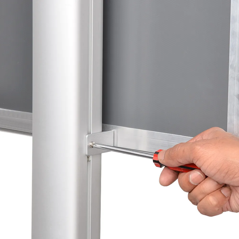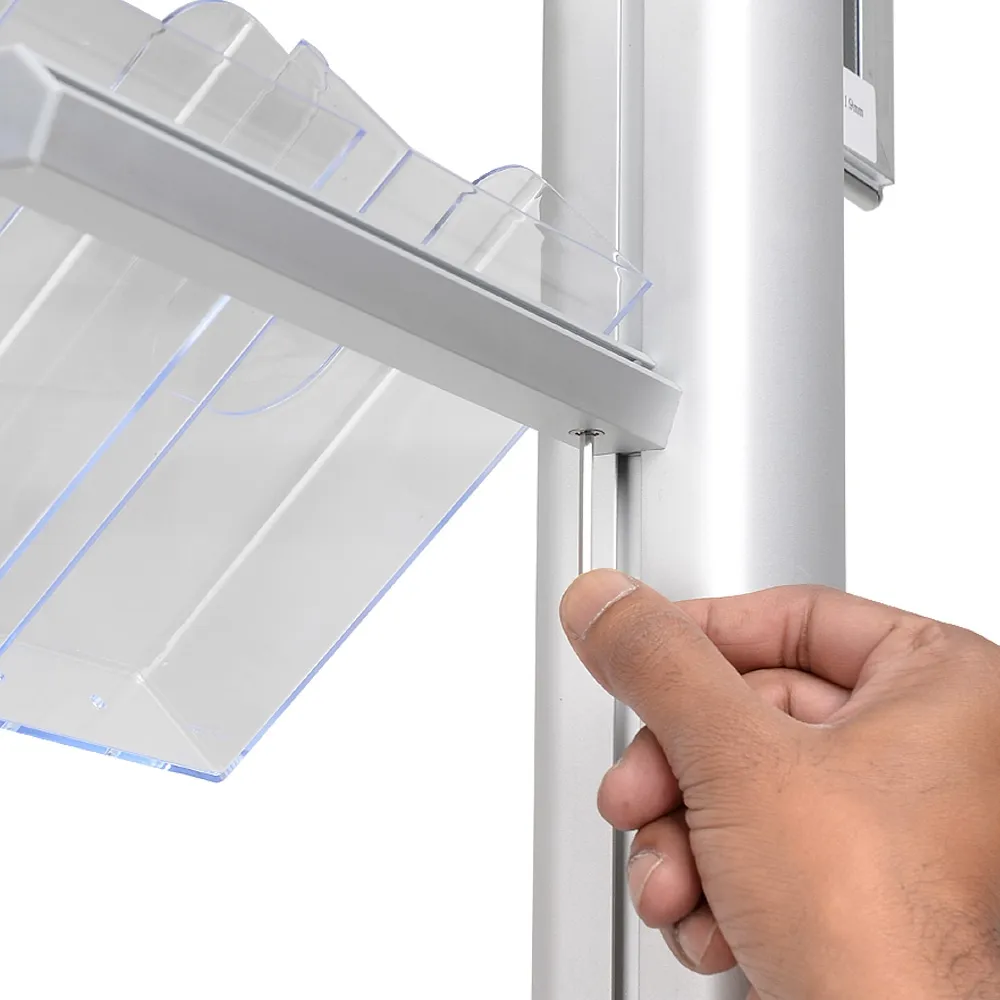 Display holders for brochures use an A2 (420 x 594mm) poster frame to get the attention of passersby, ideal for retail stores, real estate agencies, booths in exhibition halls, and more! The retail literature display utilises a snapframe design to make poster changes quick and easy without any tools necessary. Snap open the four sides, remove the protective lens and existing poster, and replace with the new one in seconds! The protective lens helps keep posters from getting dirty in order to maintain a professional look.
