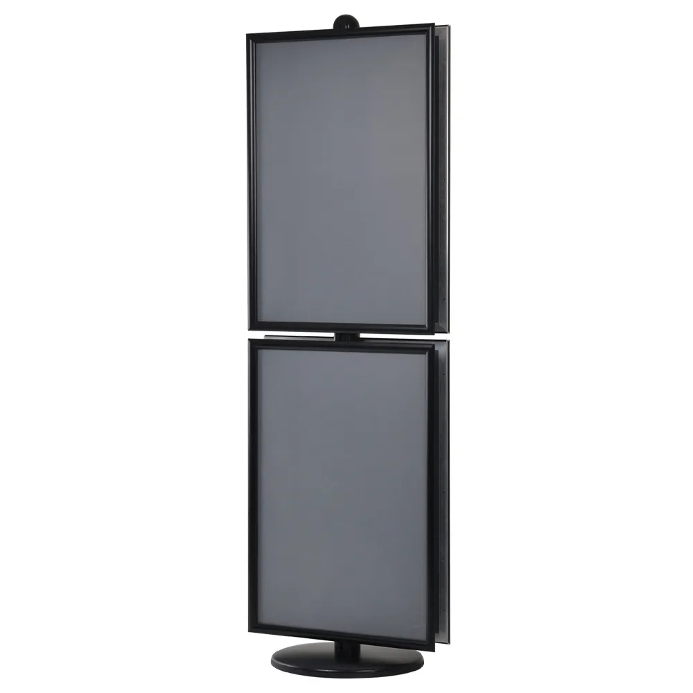 The metal sign display stands have a modular design that allow poster holders to be adjusted along the centre pole to be best viewed by potential customers. The two-sided nature makes it easy to view the posters in multiple directions at once from a single footprint. These modular display stands can have other components purchased to fully customise the display as well, with the snap frames able to be omitted and have brochure pockets added to create an information stand whilst still using the same main components!