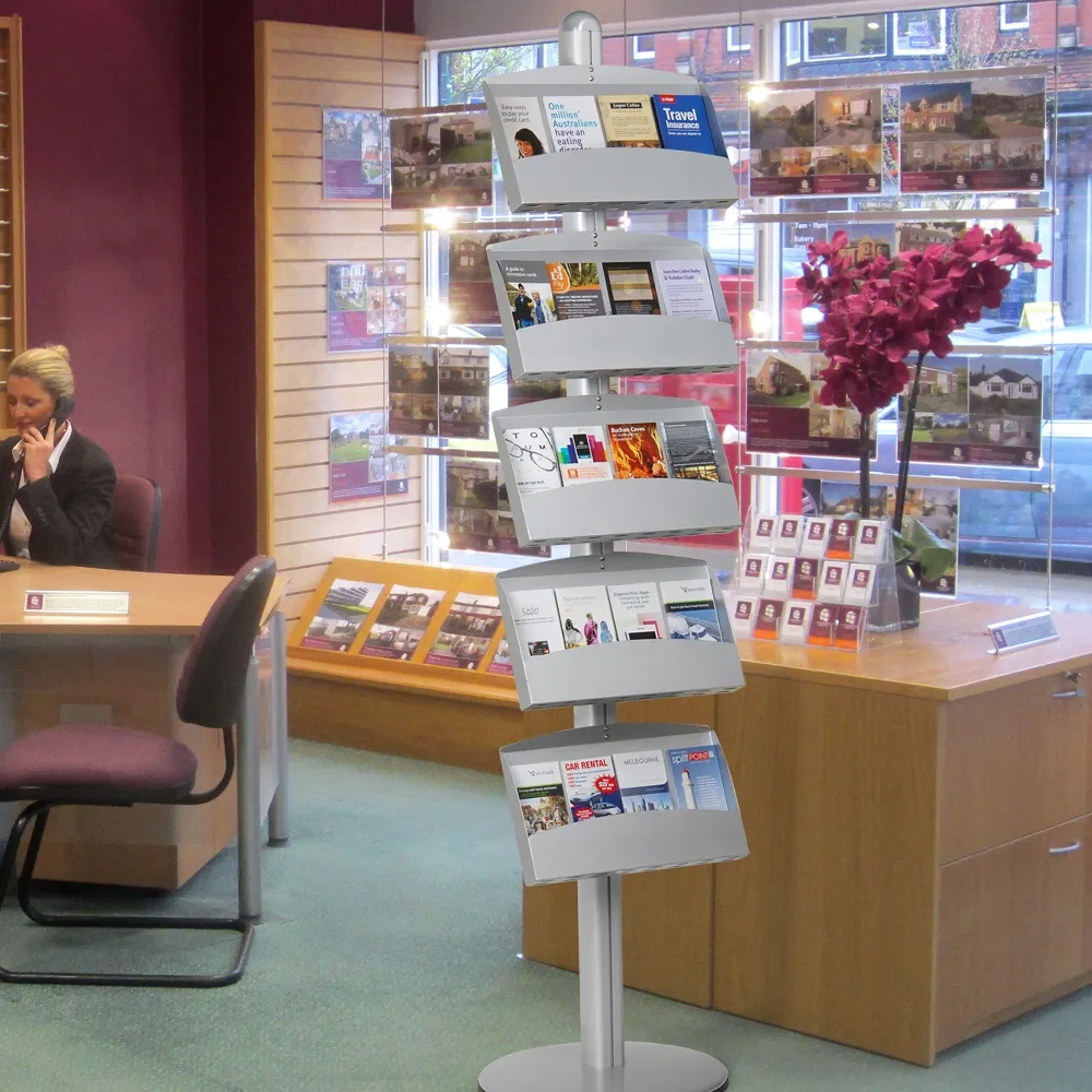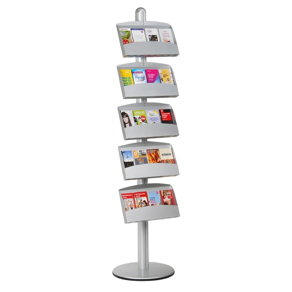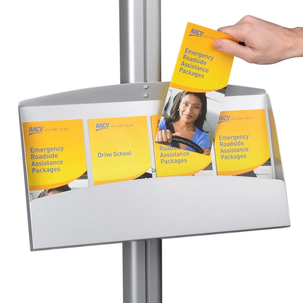 This brochure holder has an aluminium make for a durable display that is sold at a low price to be easily affordable for any business, whether a retail store, exhibition hall, car dealership, real estate agency, or information centre. The leaflet displays have a silver finish to easily blend in with any décor. The base is weighted as well for stability, and features an anti-scratch rubber sole to keep the stand from damaging the floor during use.