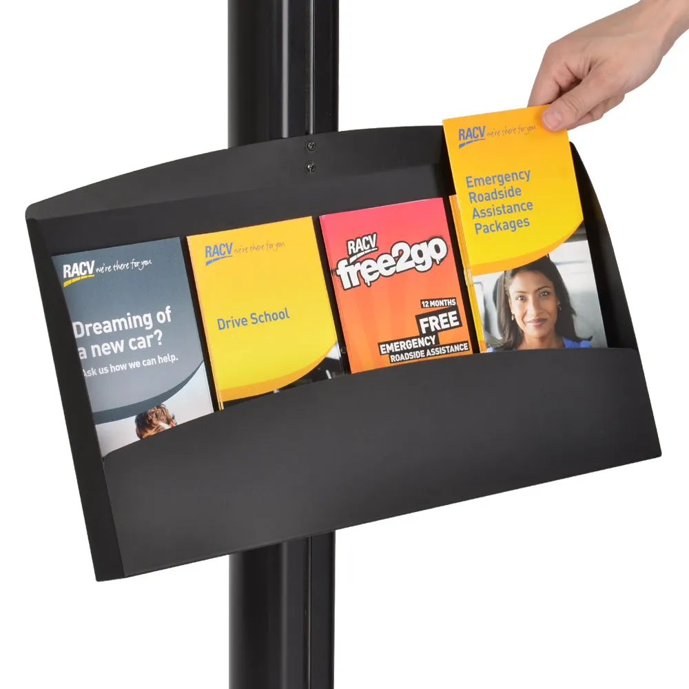DL brochure stands act as an information kiosk, combining a brochure pocket with a poster holder to help get the attention of visitors whilst providing take away pamphlets. The literature displays have a pocket that is angled upwards 25° to increase visibility. The holder is designed for holding 4 facings of DL (99 x 210mm) standard sized brochures, providing heaps of literature in one place!