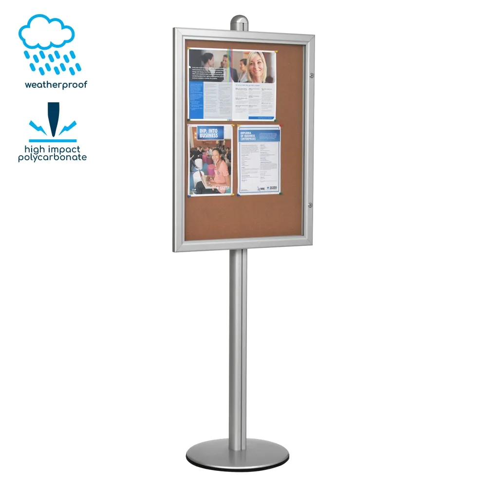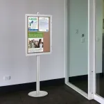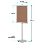 This enclosed bulletin display, public notice board is a free-standing display that is height adjustable. You can place the noticeboard at the desired height to best fit your needs on the 1900mm tall stand! The large 820 x 570mm message board provides ample space for posting of various notices.
