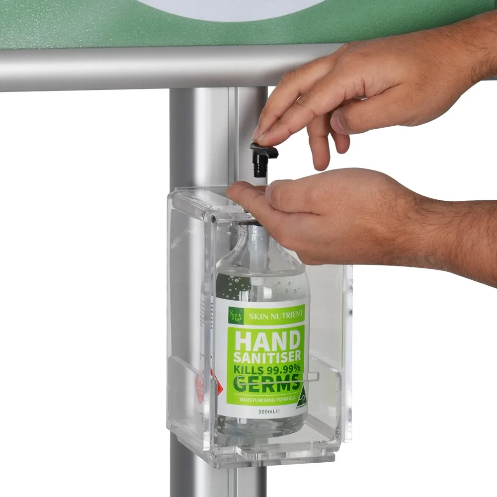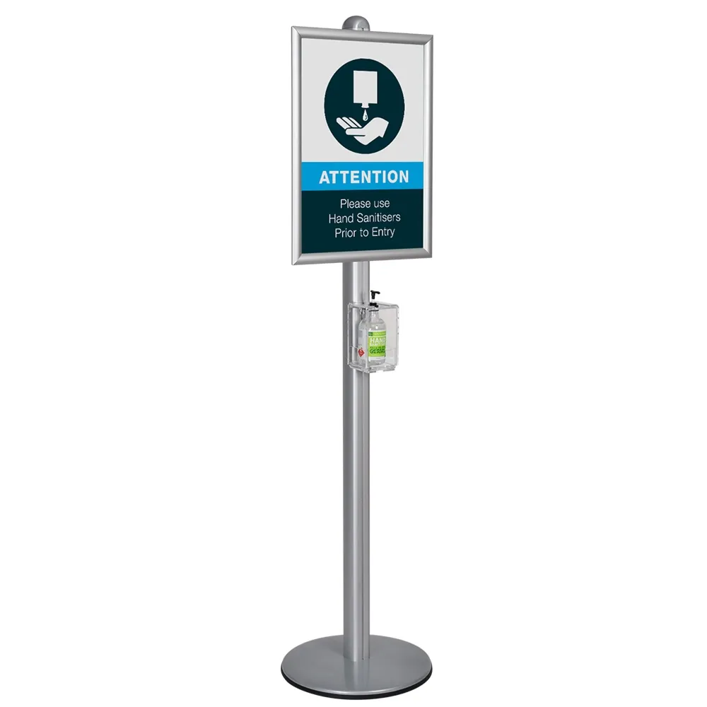 - A2 poster display with secure holder safely provides hand sanitiser gel to visitors