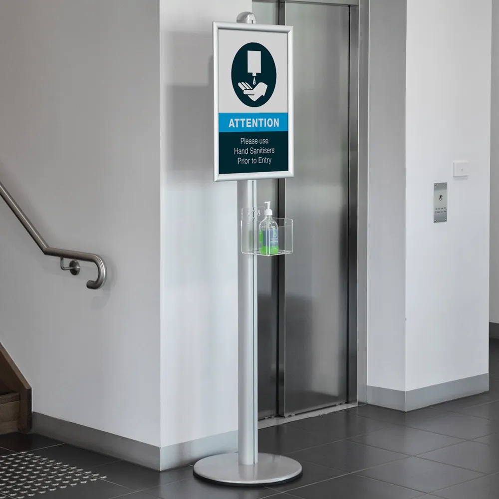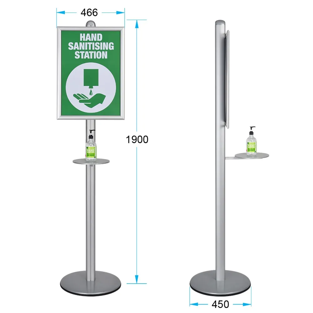 - Sanitiser stand includes A2 (420 x 594mm) poster snap frame for promotion