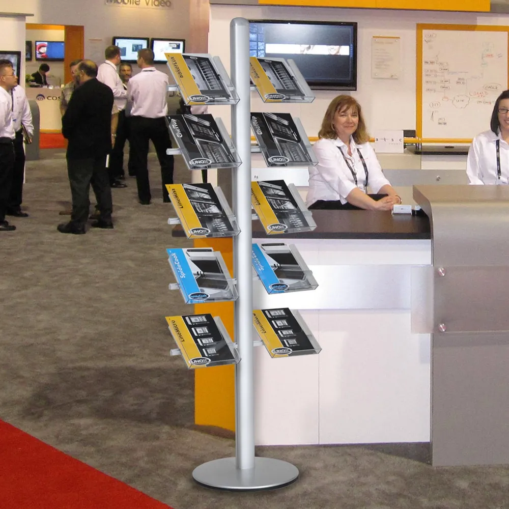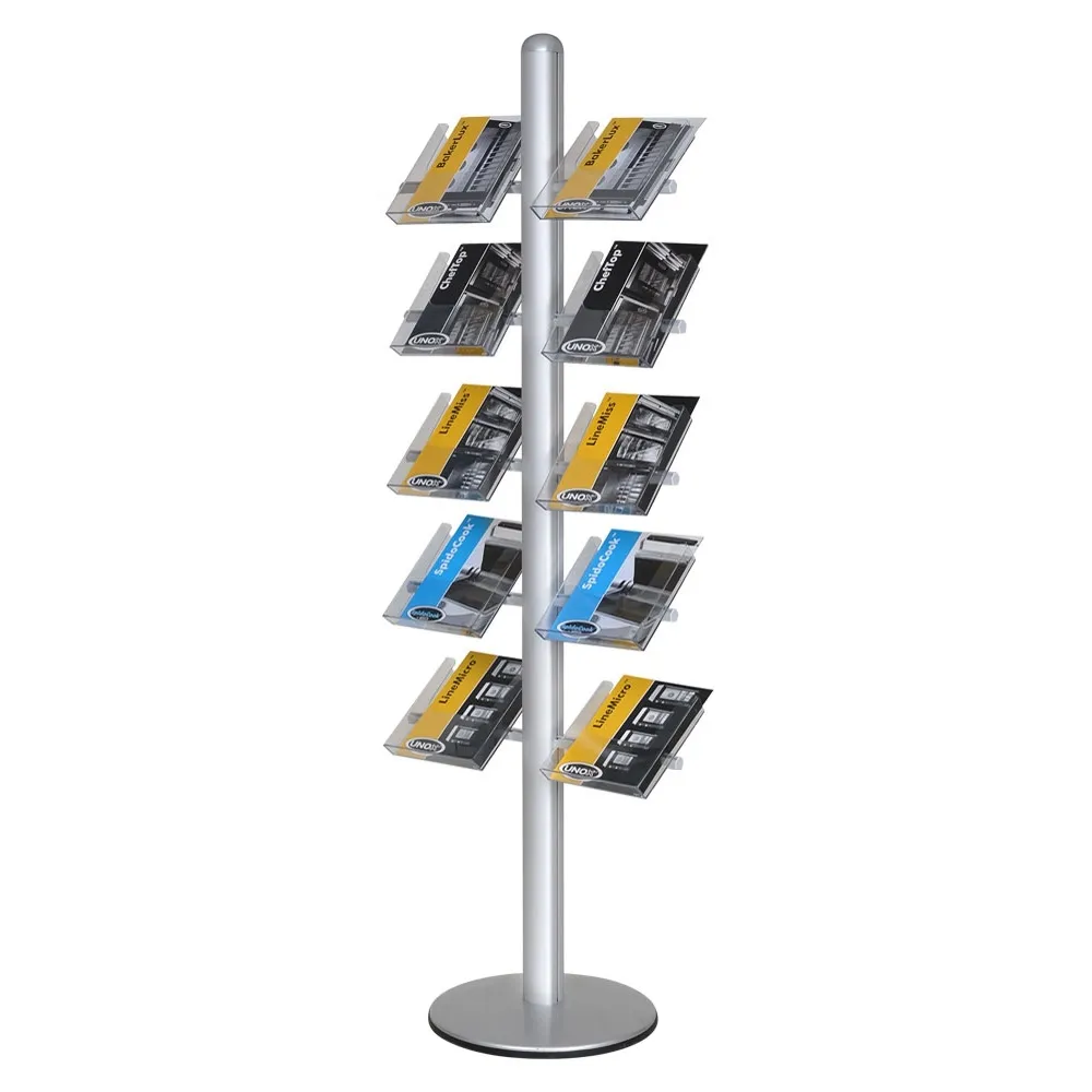- Displays A4 or DL brochure sizes with a total of 10 adjustable acrylic brochure displays