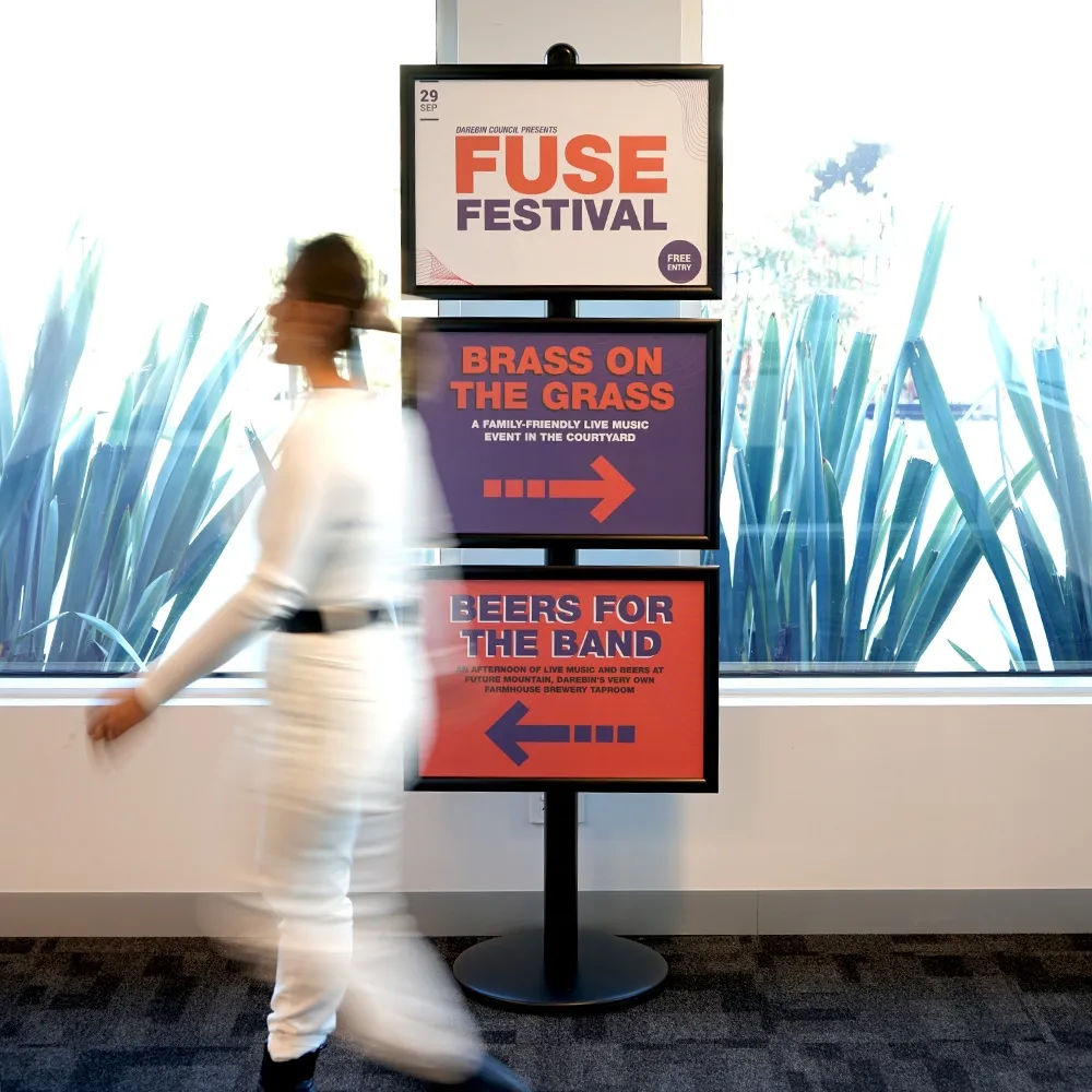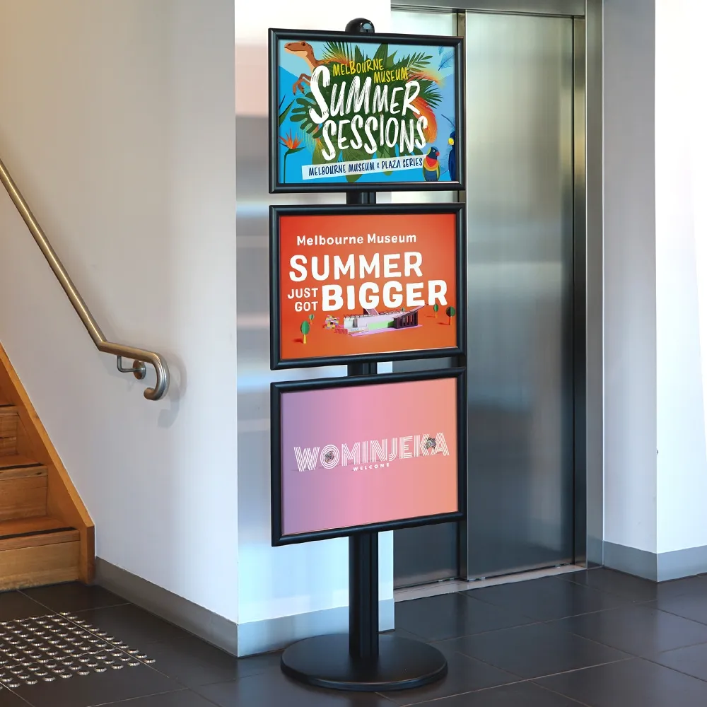 - Free standing signs display (3) posters in A2 (420 x 594mm) snap frames