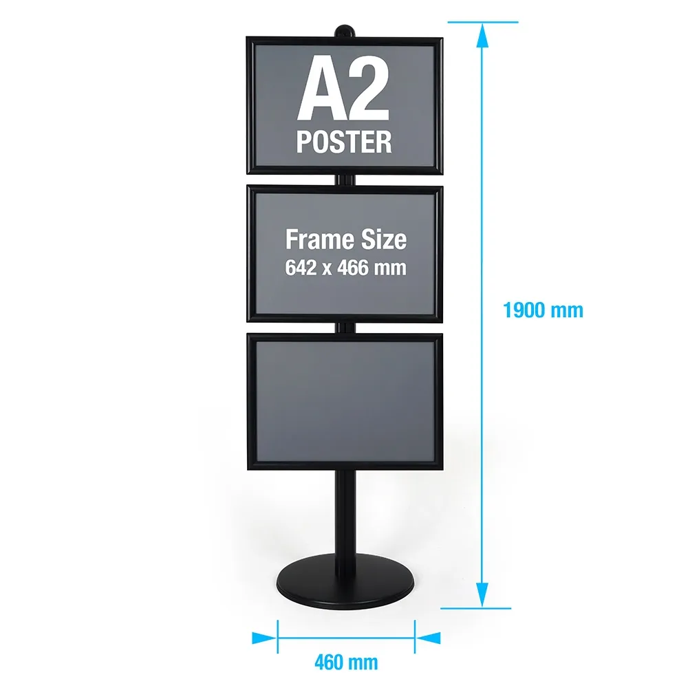 - 1900mm tall poster stand has small 450mm diametre footprint, great for exhibition use