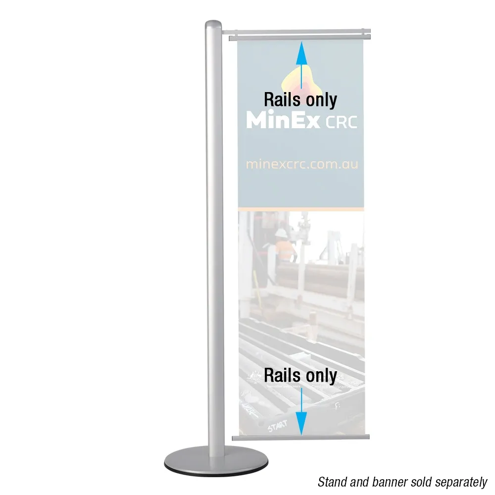 The rails are used to display a banner of 1700 x 600. A straight forward assembly instruction sheet is also included along with all fasteners required to get your banner and rails assembled and ready to go within minutes.